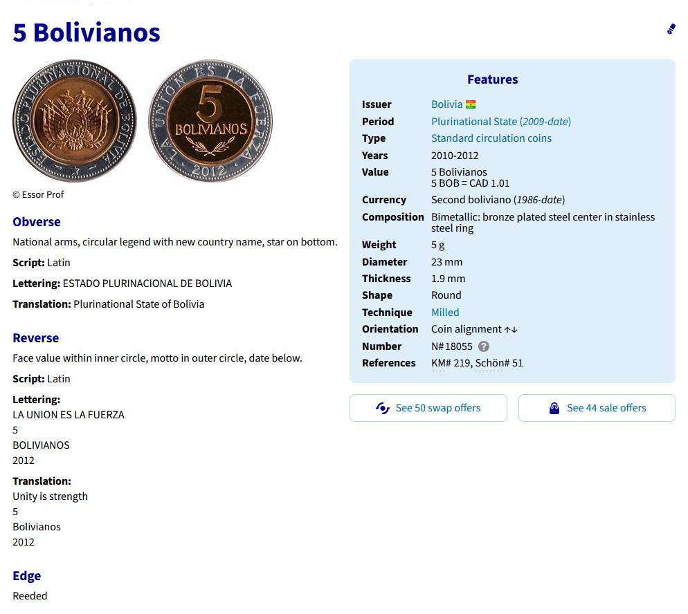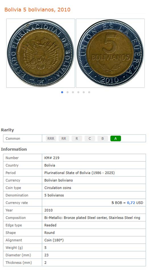 سکه 5 بولیویانو بولیوی 2010 (نایاب)