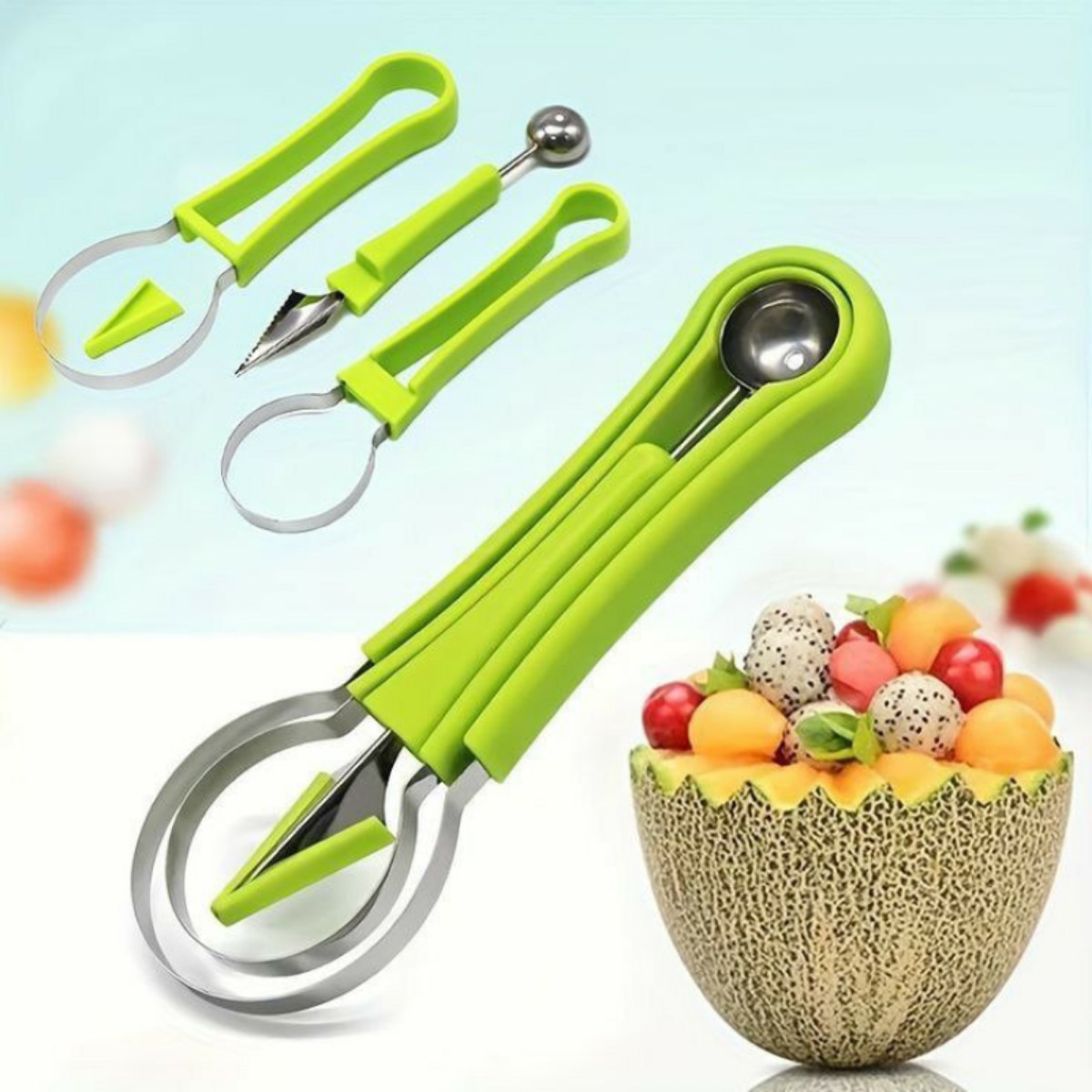 شامل سه ابزار کاربردی برای برش زیگزاگی، قالبزنی توپی و پوستگیری انواع میوه مثل هندوانه، طالبی، کیوی و ...