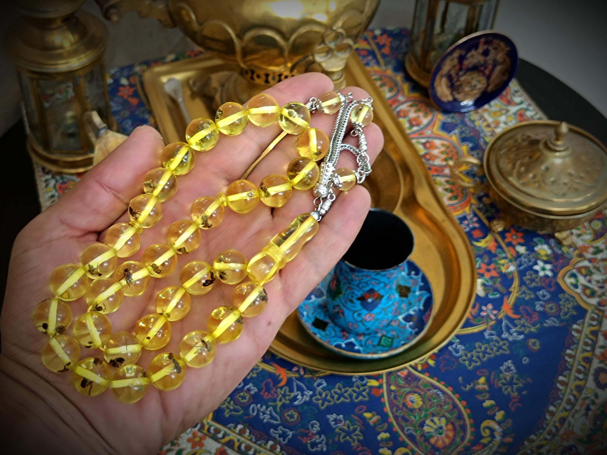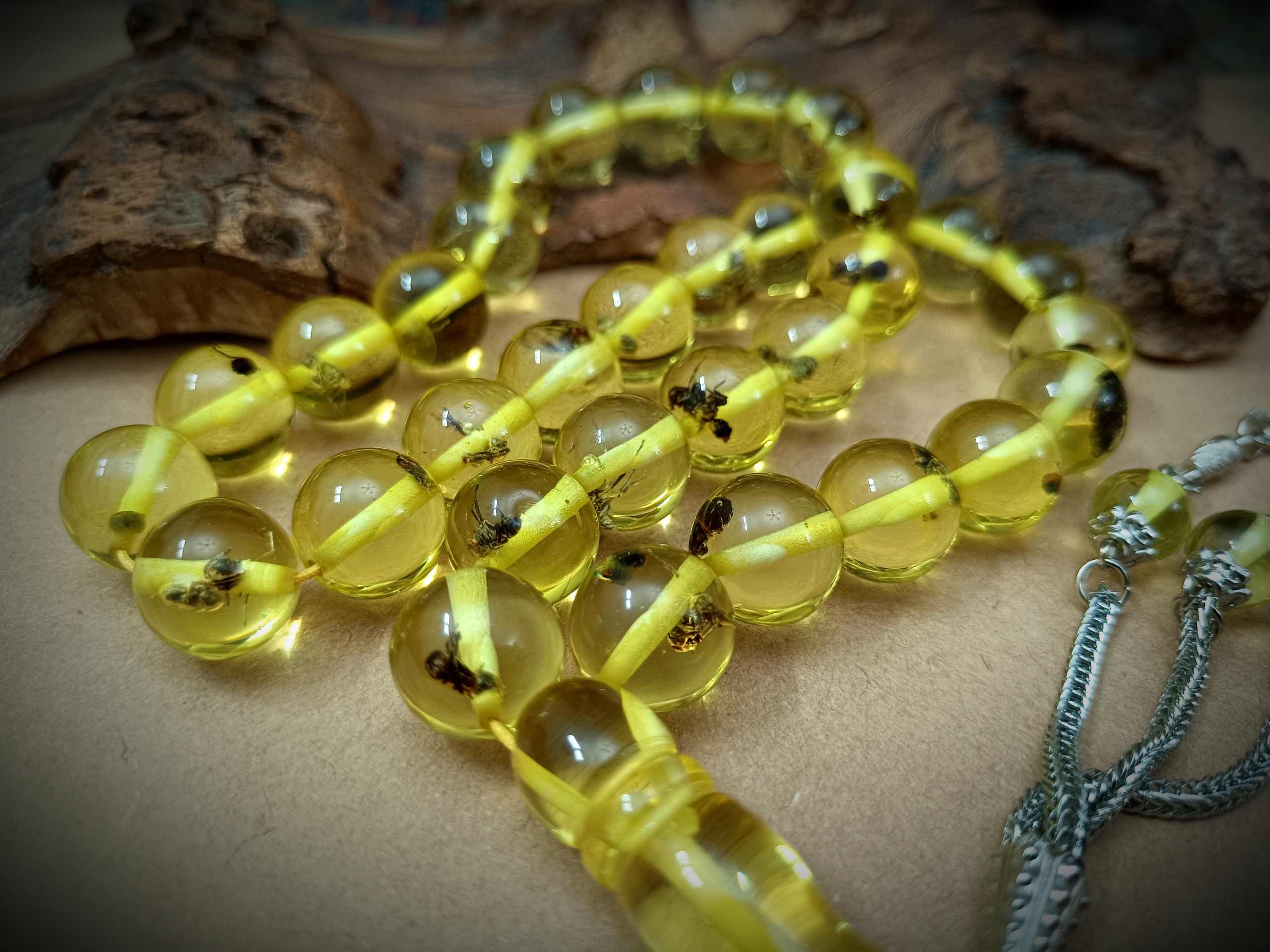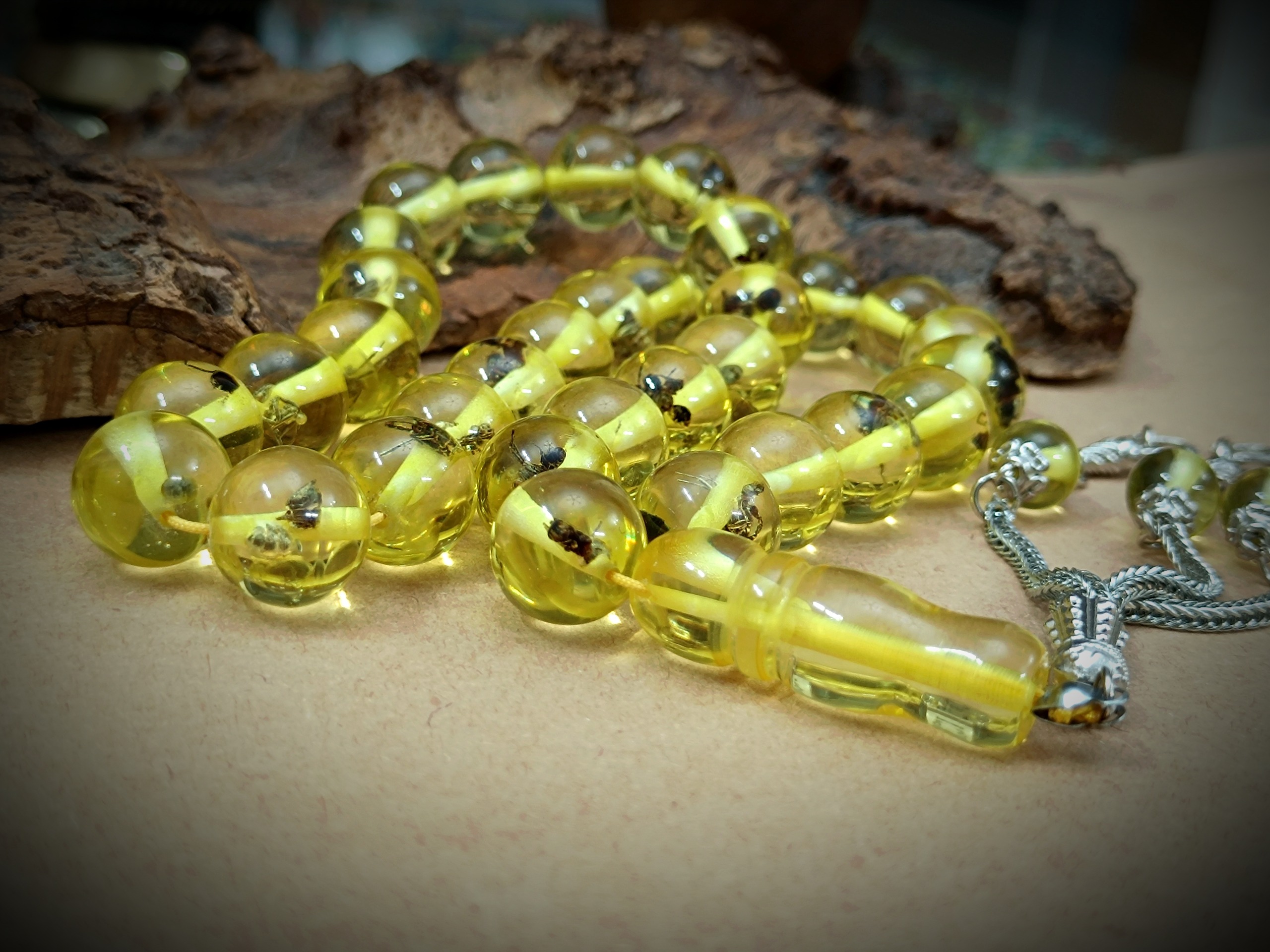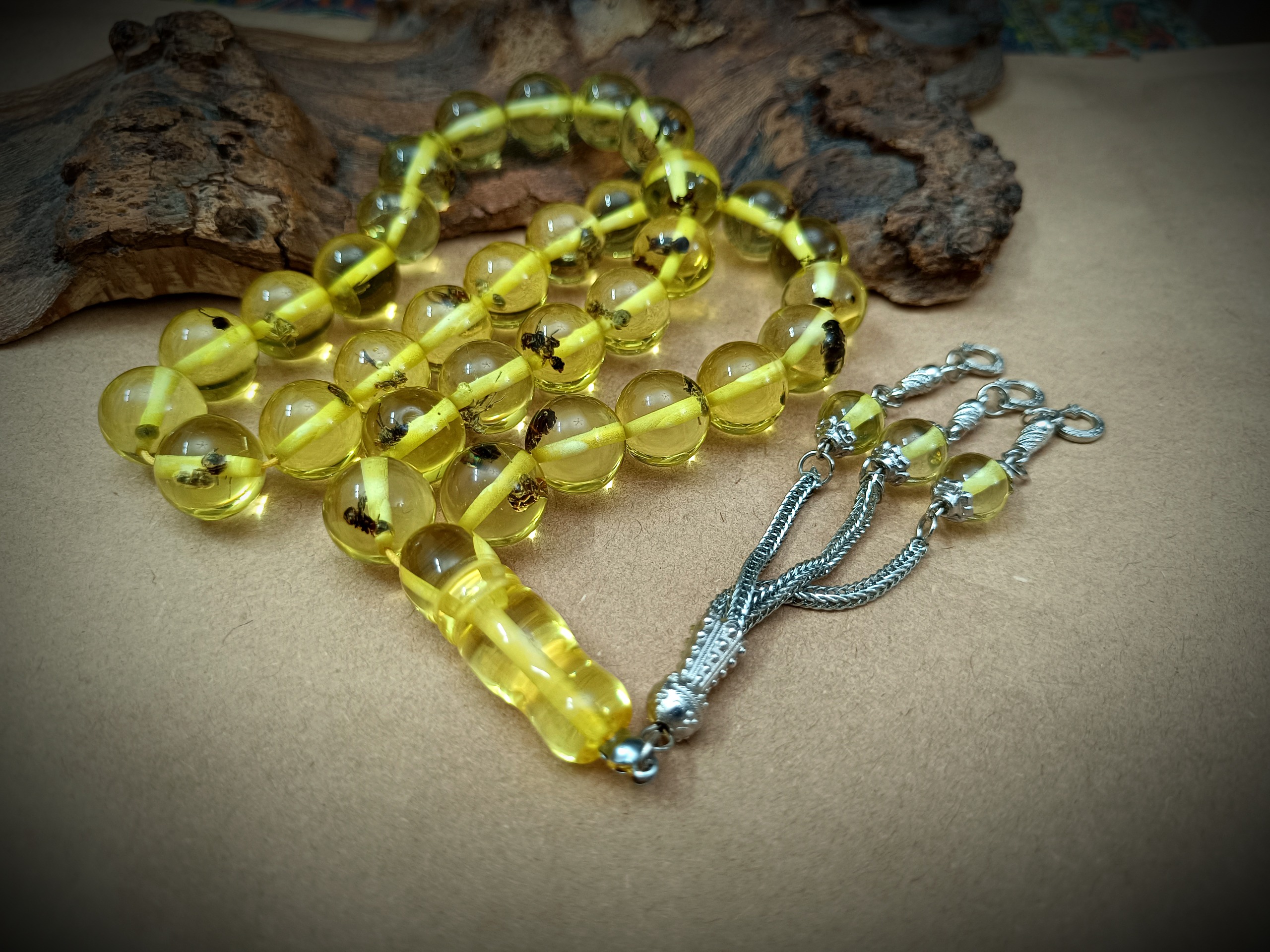 تسبیح 33 دانه شمش کهربا مورچه دار