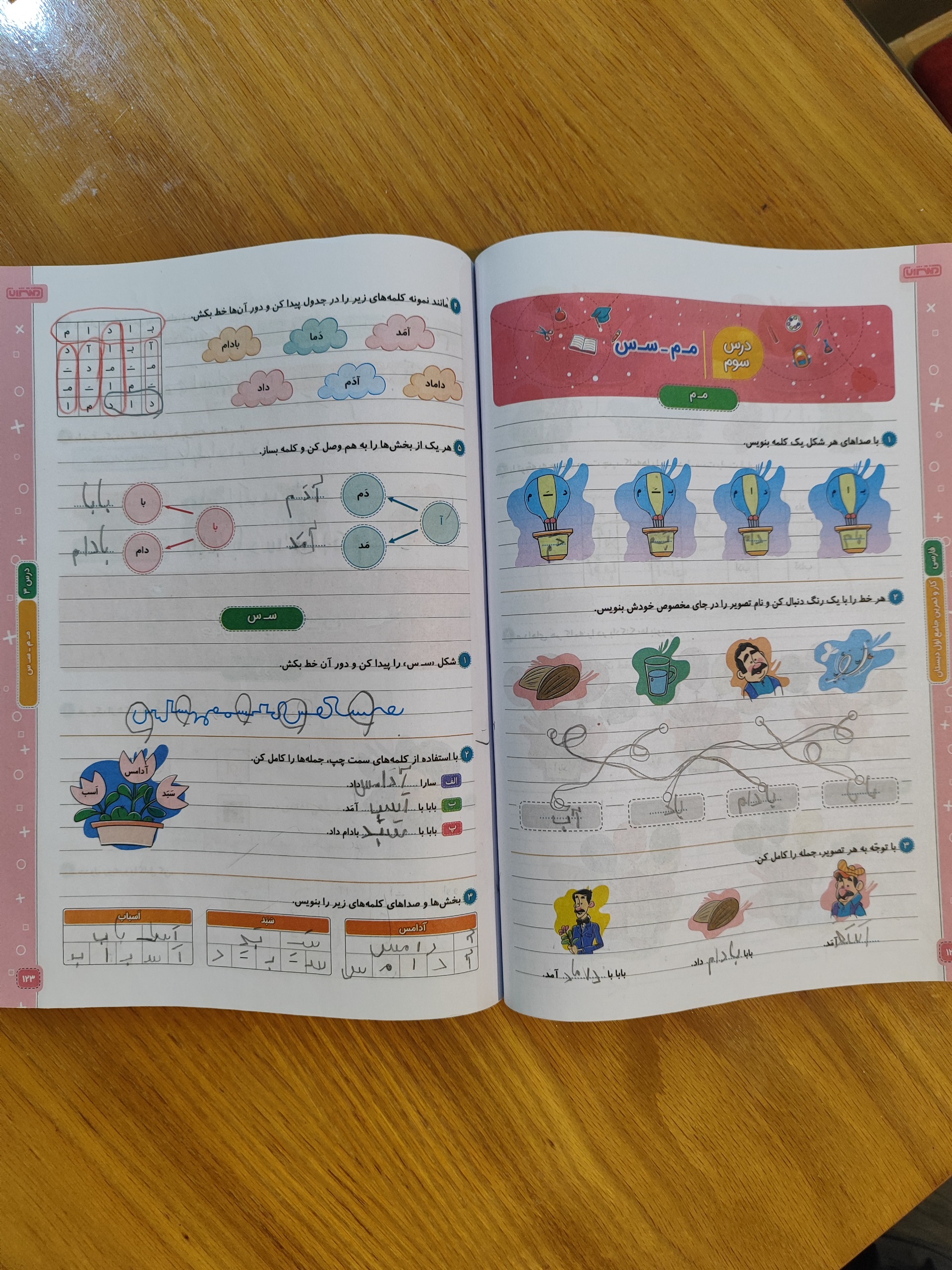 بعضی از صفحات کتاب با مداد نشانه گذاری شده است .