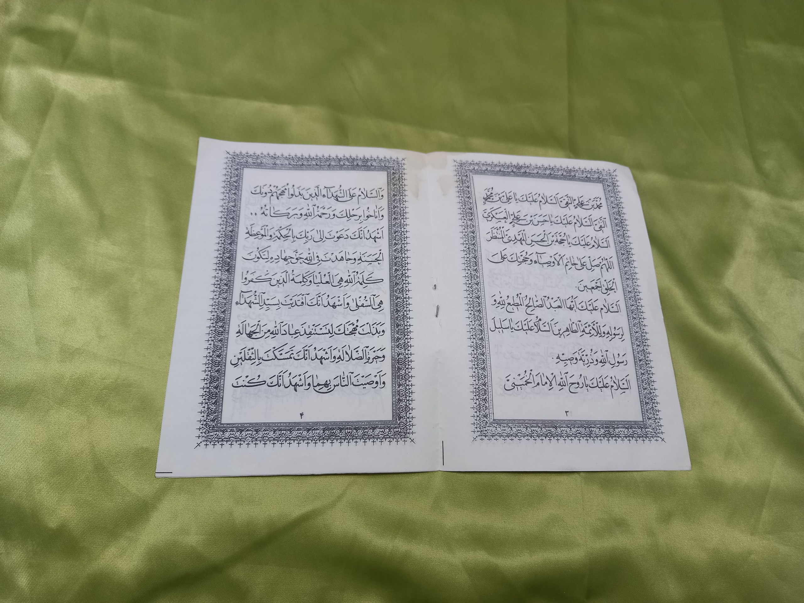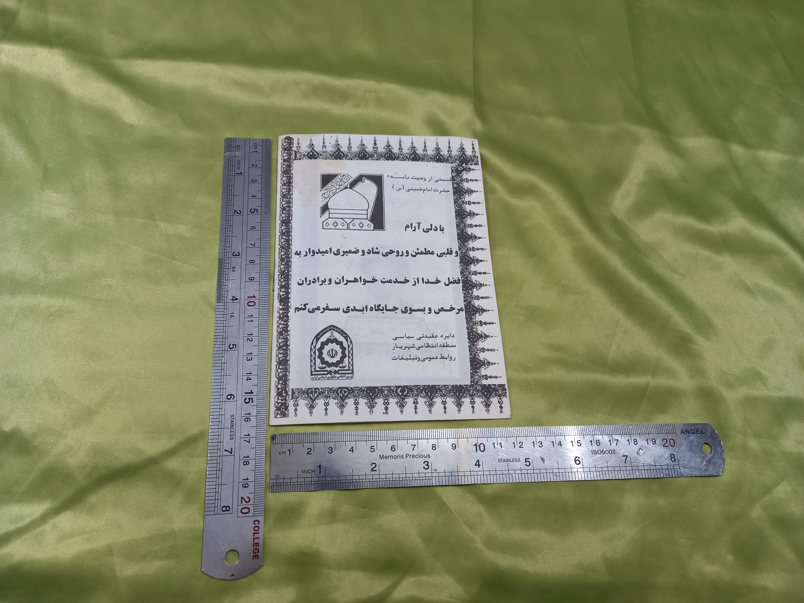 پشت زیارتنامه قسمتی کوتاه از وصیت نامه امام میباشد