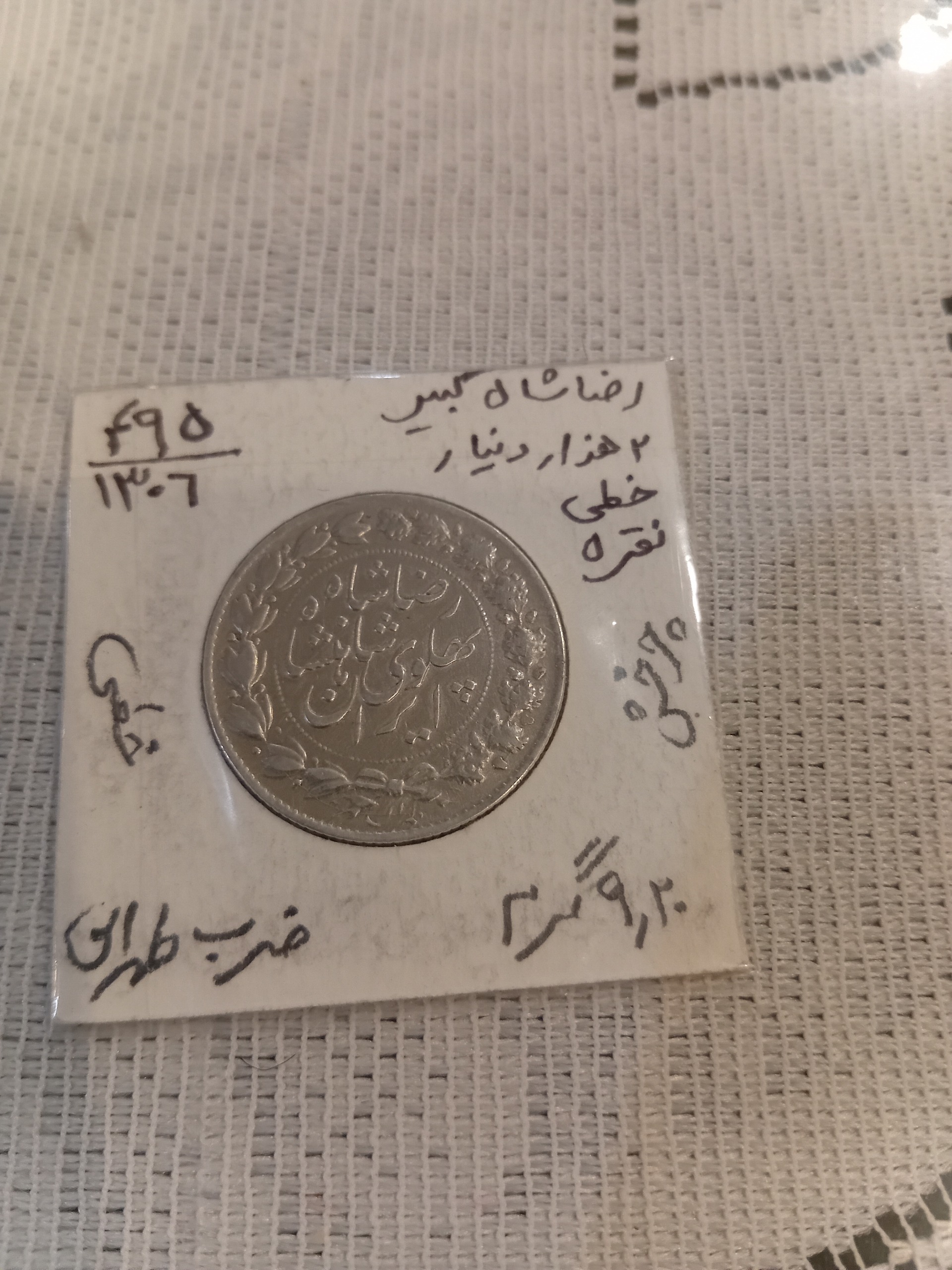 سکه 2000دینار خطی 1306 نقره رضا شاه