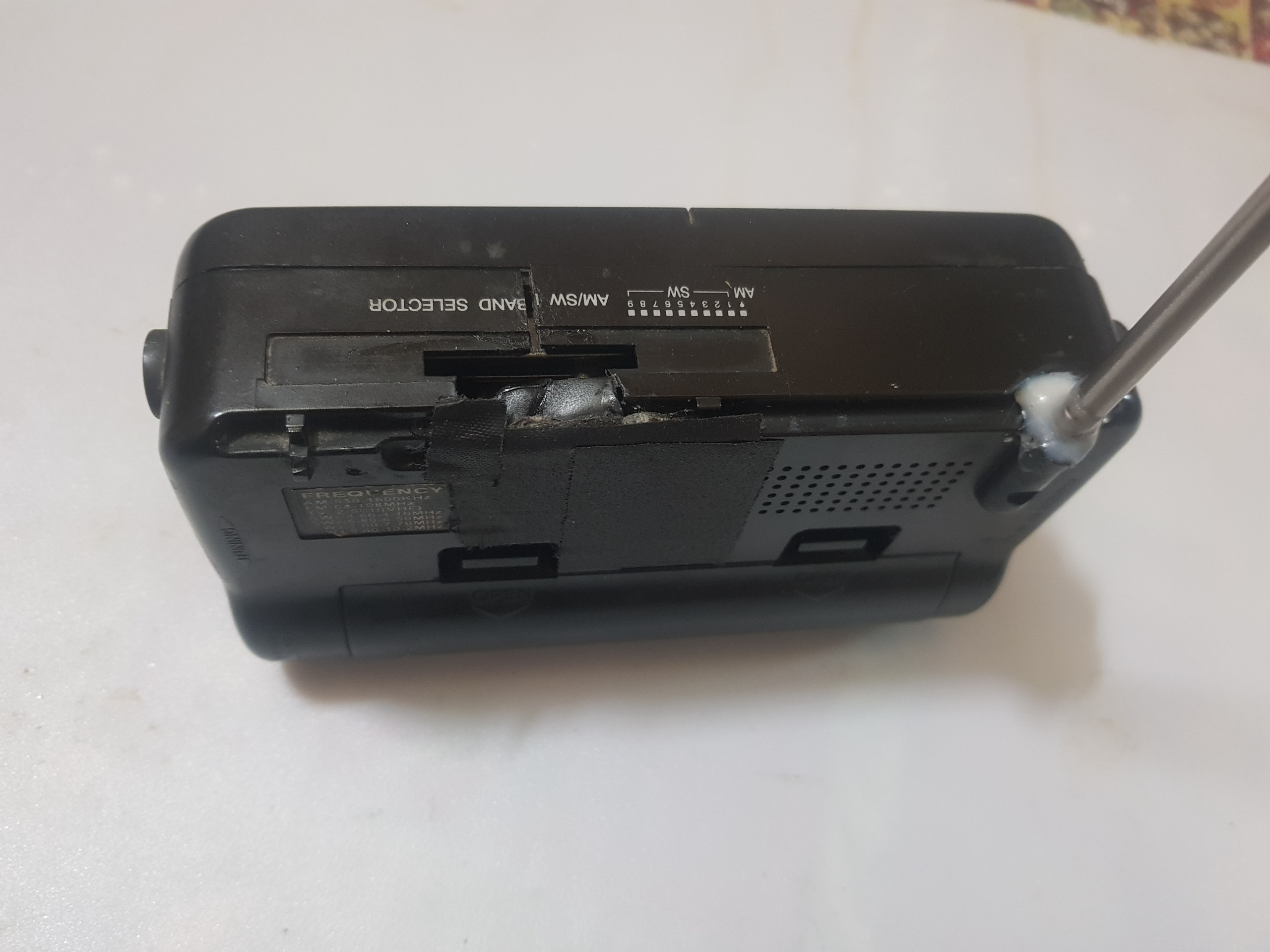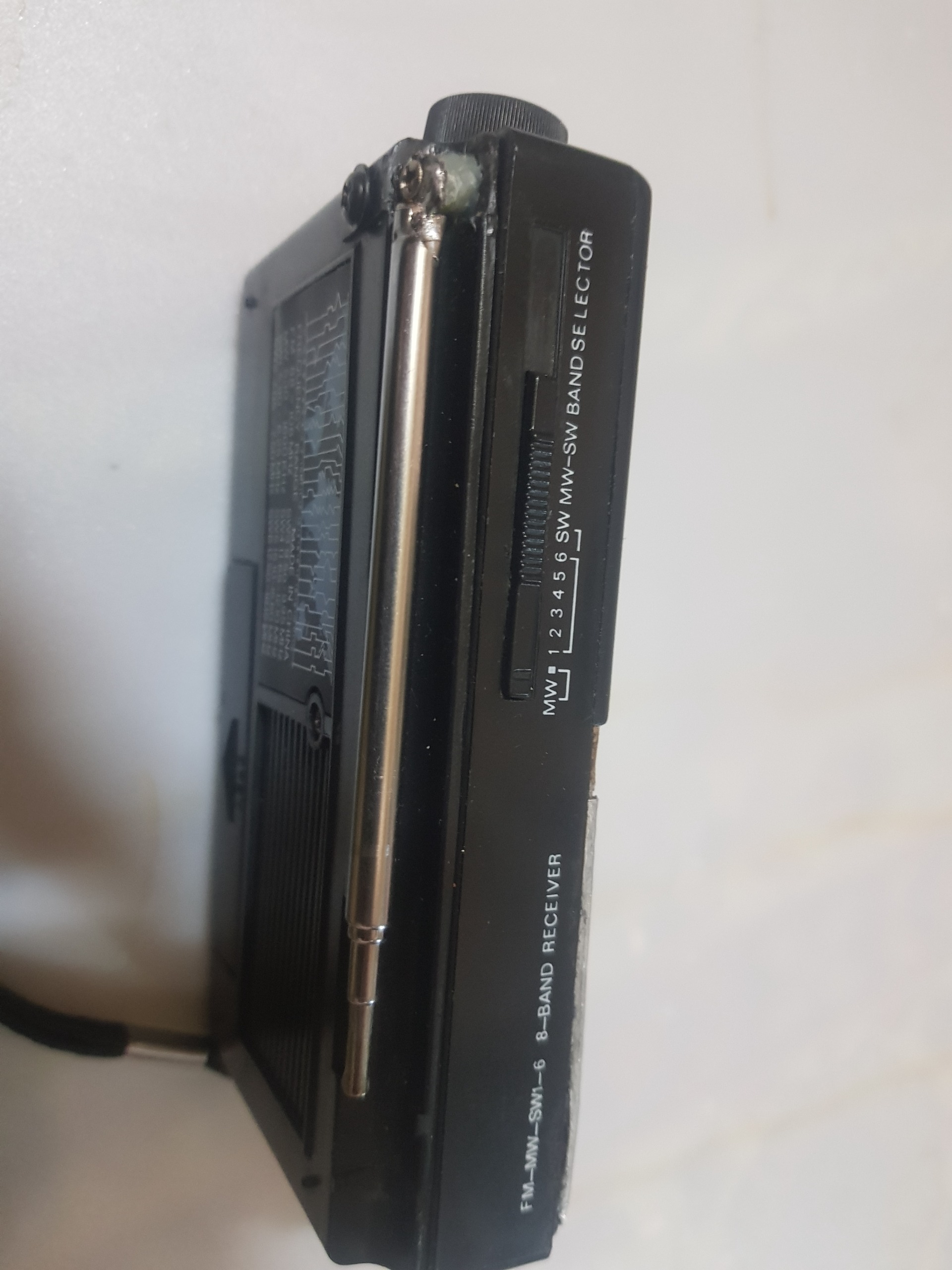 رادیو سالم بزرگتر هم 10 بانده می باشد و آنتن ان هم با چسب دو قلو قرار داده شده که ظاهرا بزرگتر از انتن اصلی بوده و اندازه انموقع باز کردن به 1مترمی رسد همانطور که تو عکس مشخص هست کلید کشویی قسمت sw کنده شده ولی باز هم میشود با انگشت ان را تغیرداد این رادیو2 باتری بزرگ میخوردو همچنین جای آداپتور هم دارد به جای باتری بزرگ باتری شارژ شونده با کیفیت درون آن قرار داده شده که هر وقت شارژ ان تموم شود نیم ساعت به آداپتور وصل کنید مجدد شارژ می شود این رادیو هنگامی که شارژ میشود نویز زیادی دارد بهتر است هنگامی که شارژر را قطع کردید ان را روشن کنید یک کابل دست ساز جهت آداپتور آن ارسال می شود که یک سر ان یو اس بی است که میتوانید به شارژر های گوشی وصل کنید