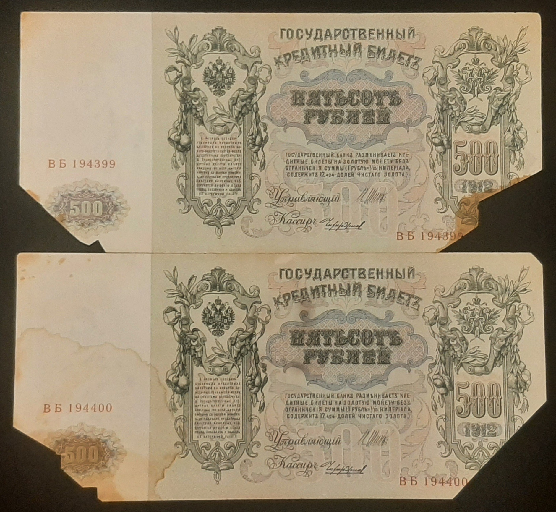 جفت اسکناس بزرگ 500 روبل روسیه (تزار نیکلای دوم)