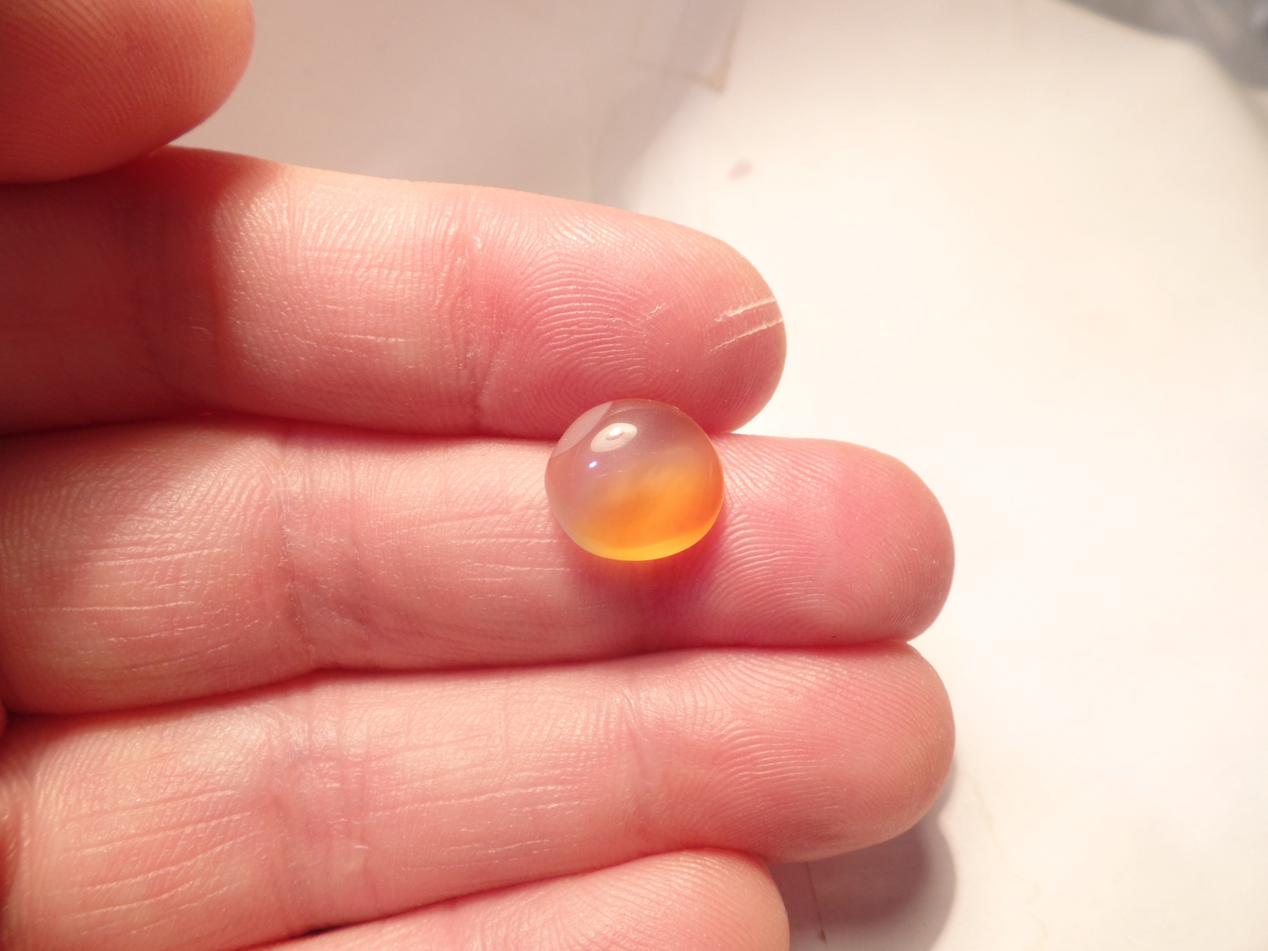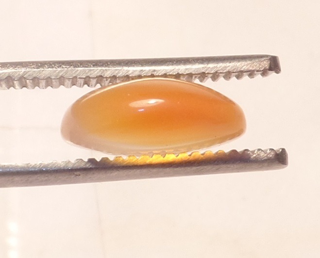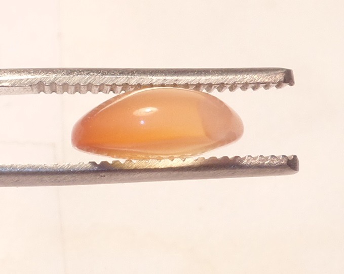 طرح : یک قطعه نگین عقیق دو رنگ نارنجی و سفید خوش رنگ و خوش طبع و با تراش عدسی نا متقارن.  پشت سنگ ذکر شریفه شرف الشمس بصورت سوزنی و سطحی و معمولی و خراش مانند حکاکی گردیده است.