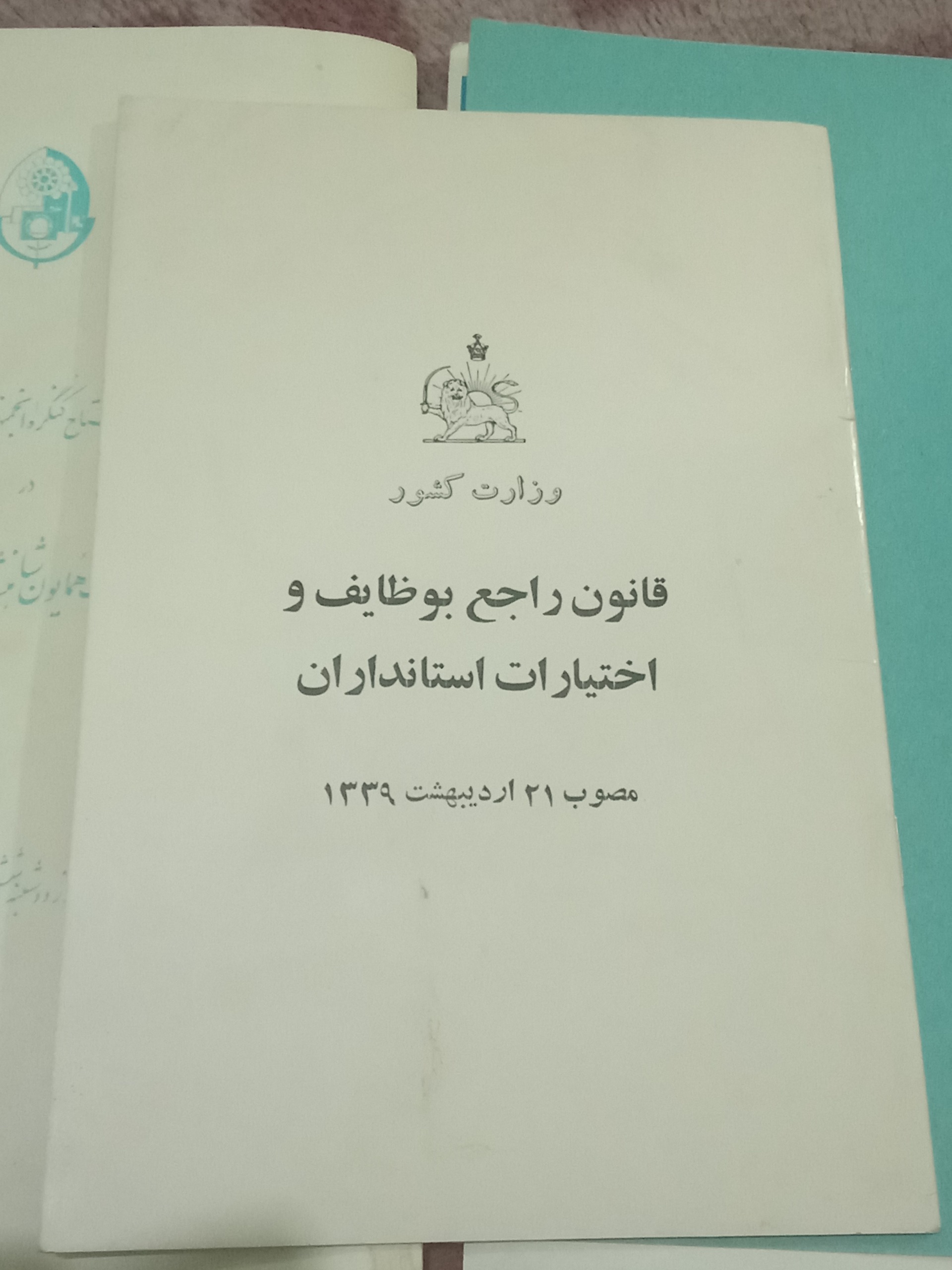 کتابچه قانون راجع وظایف و اختیارات استانداران بعد از تصویب