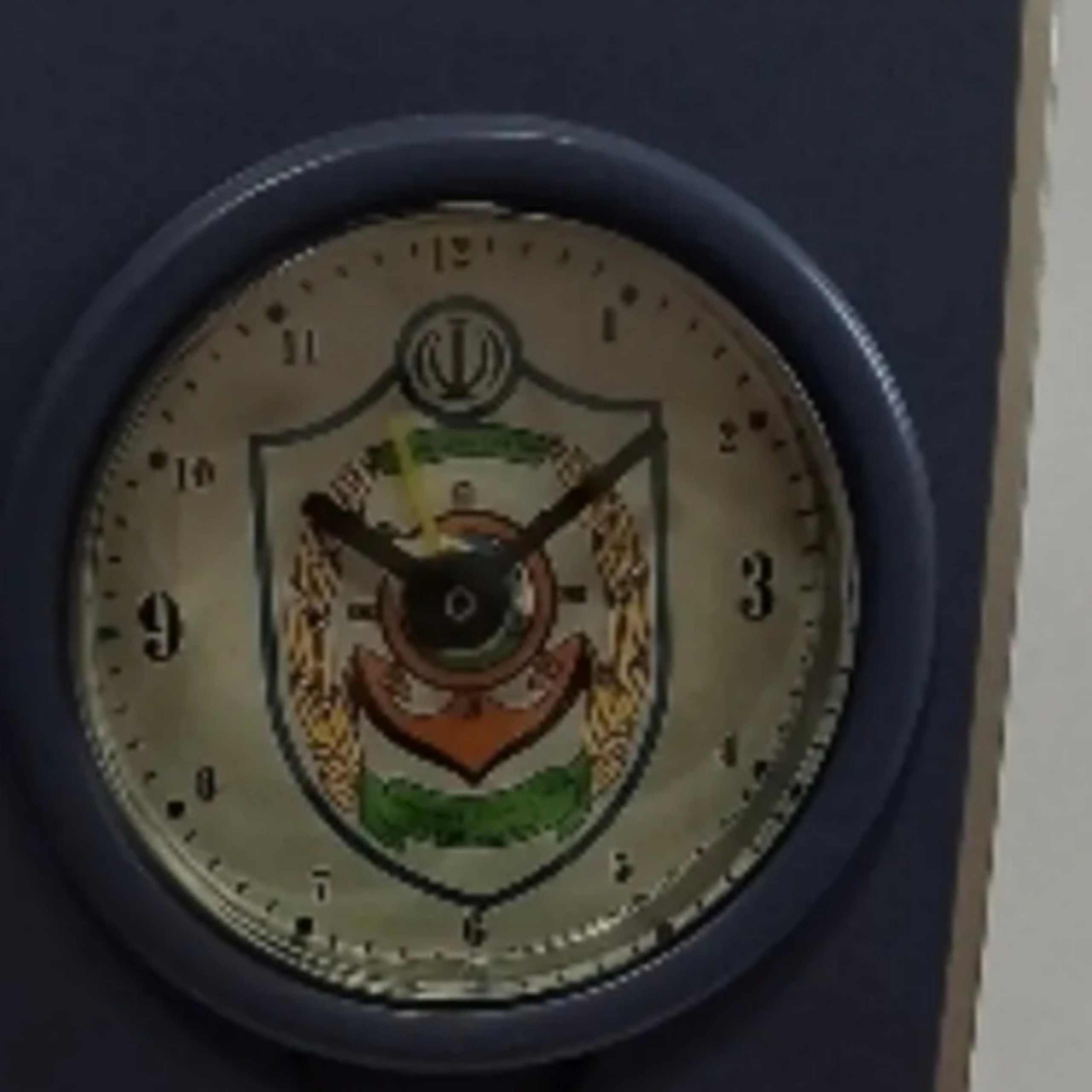 ساعت رومیزی مطابق عکس ها .رو صفحه اش آرم یکی از ارگانها قرار دارد .جعبه هم دارد .