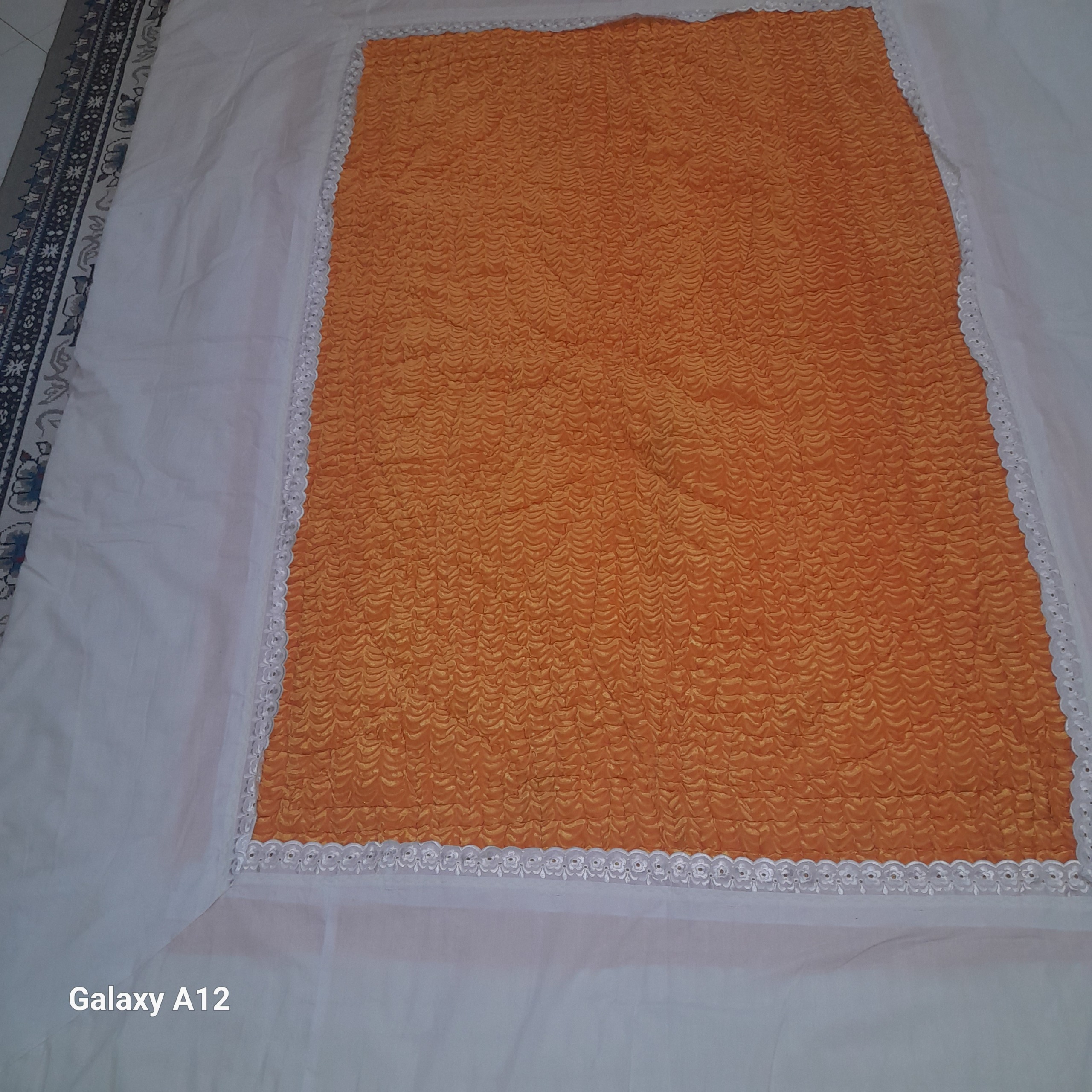 یک عدد لحاف دس دوز نونو مخمل طرح دار، با ملحفه تیترون و لبه دوزی دانتل