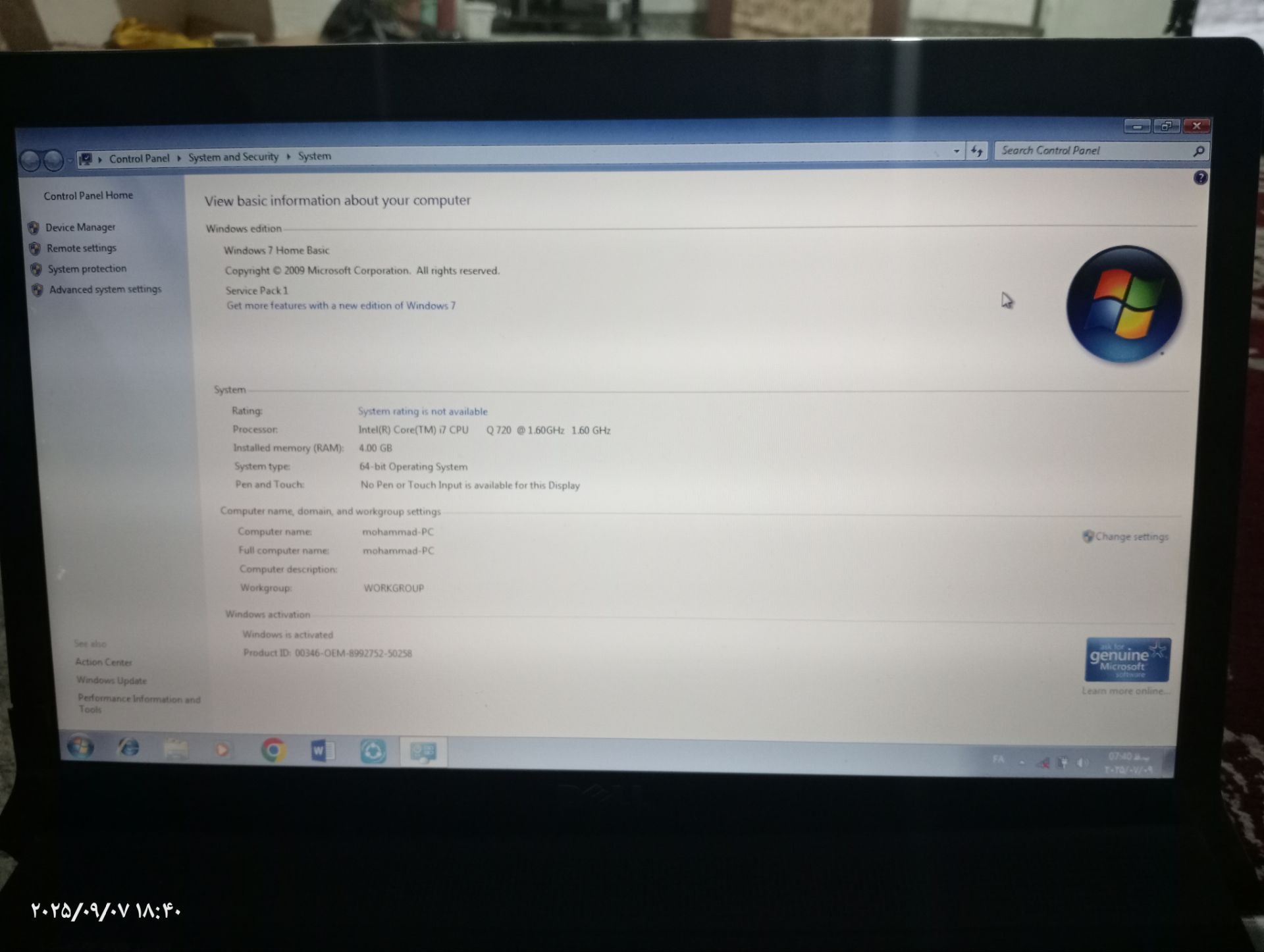 ظرفیت حافظه Ram4 گیگابایت