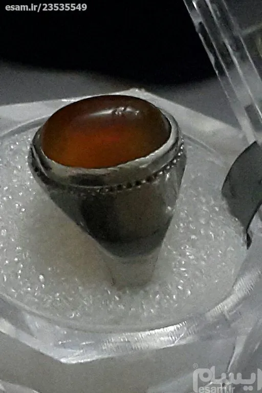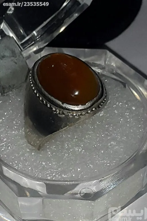 انگشتر عقیق بسیار بسیار قدیمی کلاهدار خوشرنگ عقیق یمنی با رکاب برنجی روکش نقره دستساز سایز تقریبی 65