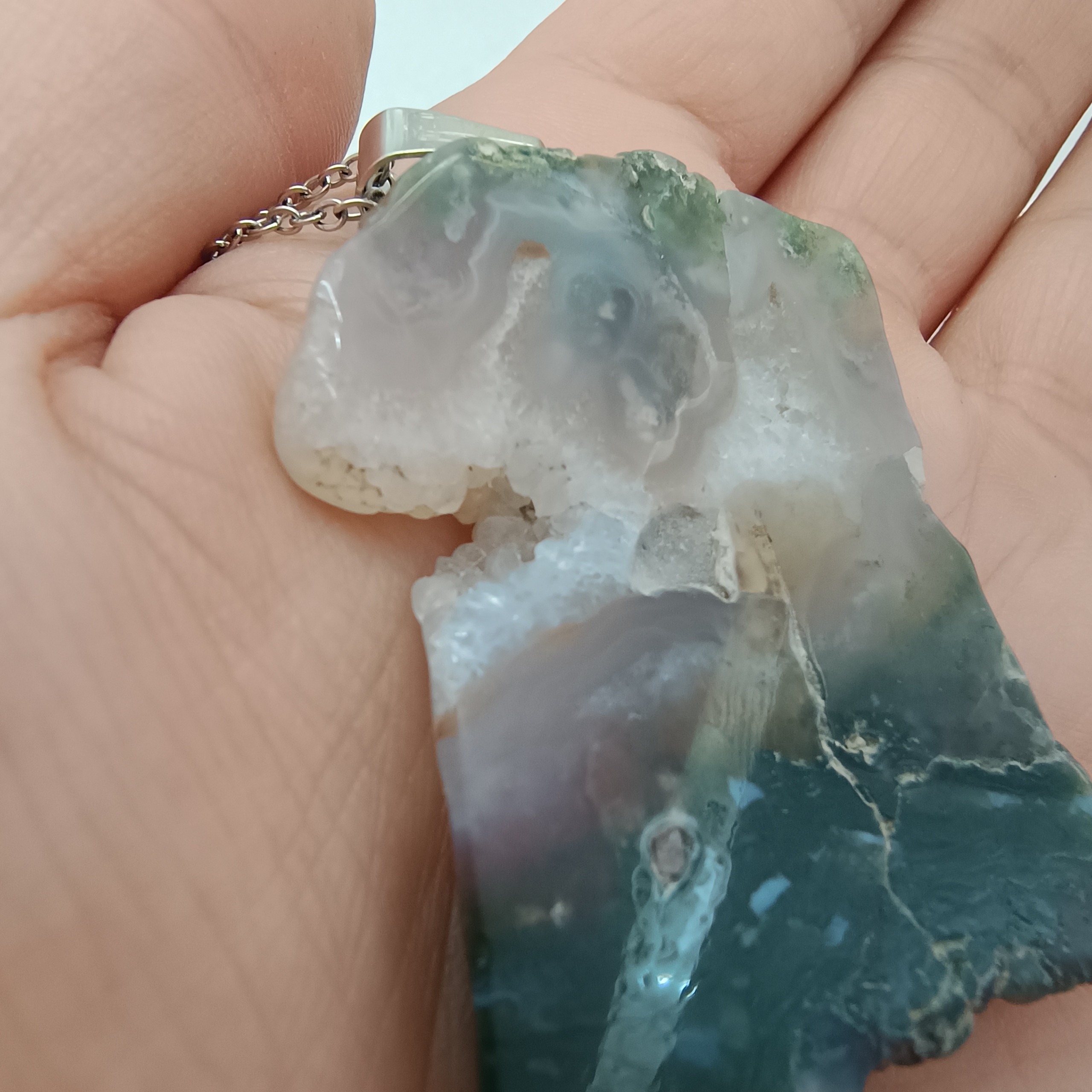 گردنبند عقیق خزه ای ژئود کوارتز م630