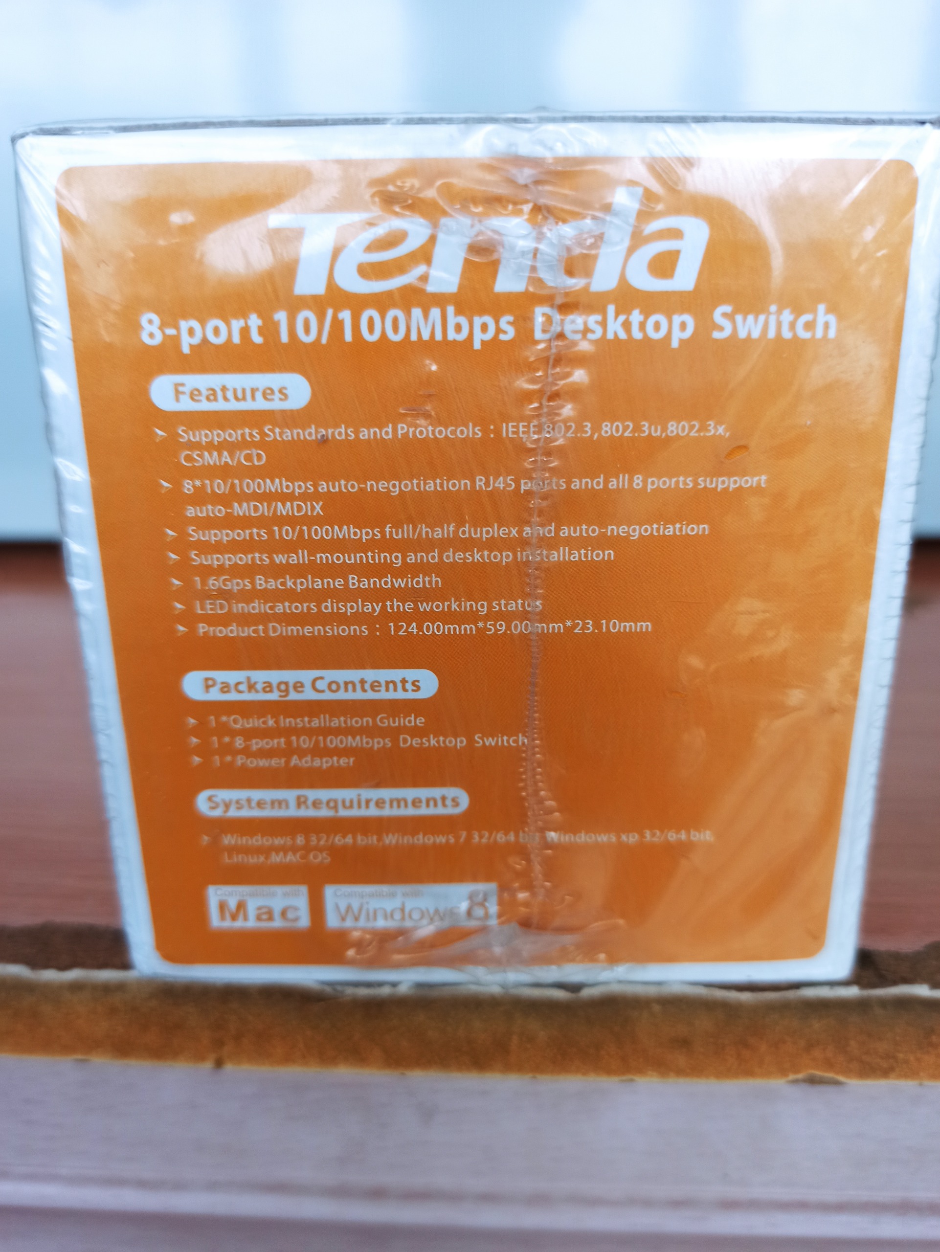 سوئیچ شبکه 10/100 تندا8پورت ،مدل دستکتاپ ،با گارانتی آواژنگ میباشد.مدل کامل این محصول Tenda 8-Port switch دقیقا مطابق تصویر موجود در سایت ایسام.لطفا از سایر محصولات عرضه شده در سایت ایسام من دیدن فرمایید.