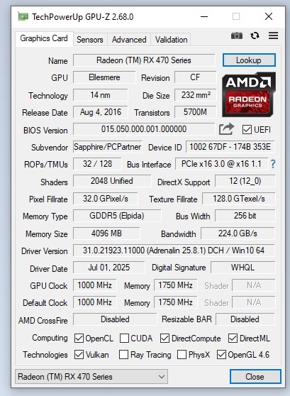 یک عدد کارت گرافیک Sapphire Nitro RX 470 4gb نسخه ماینینگ به فروش میرسد.