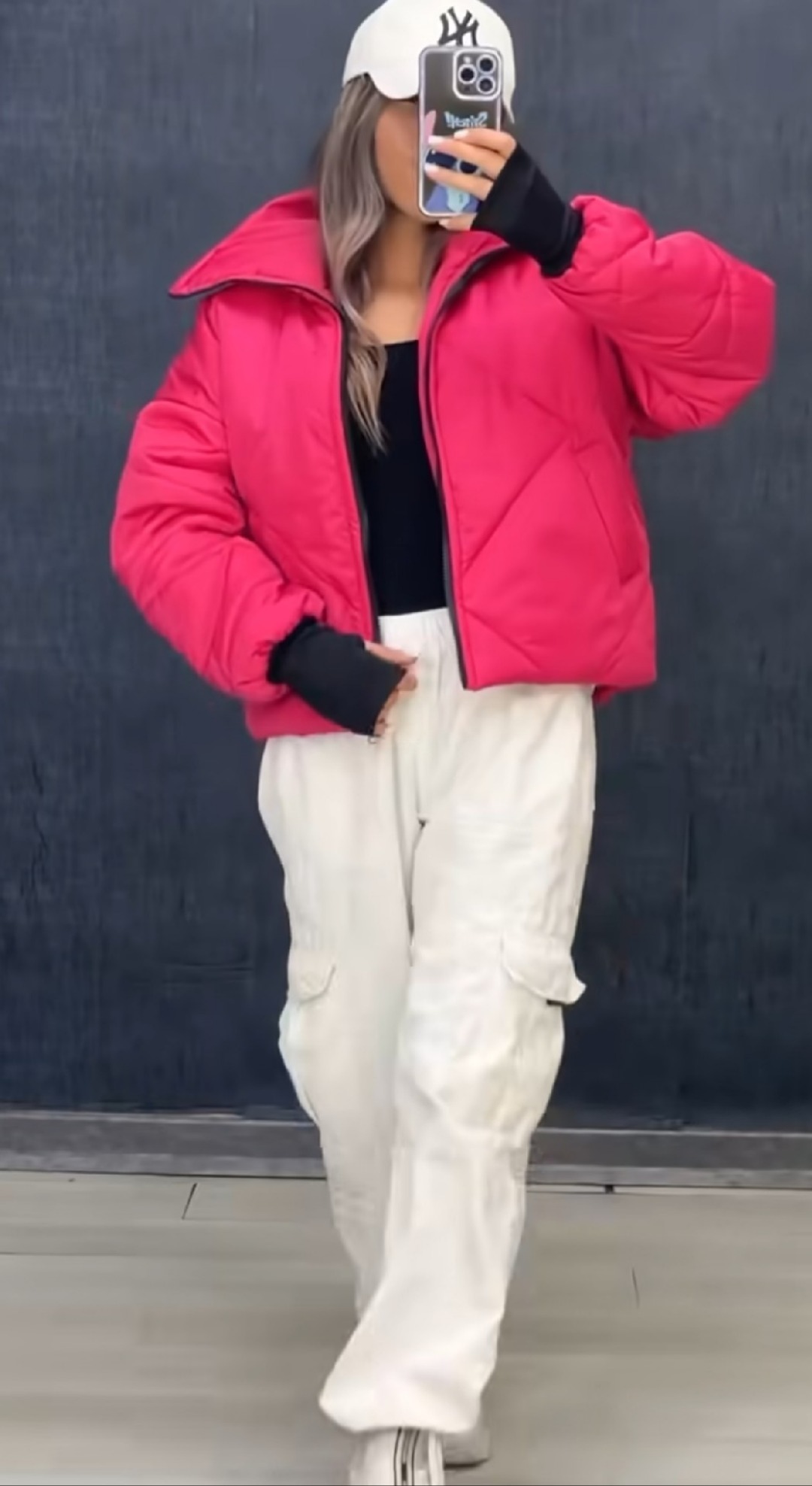 کاپشن کوتاه زیبا و شیک رنگ سرخ آبی .خیلی سبک هست و داخلش پشم شیشه داره ساق دار انگشتیه