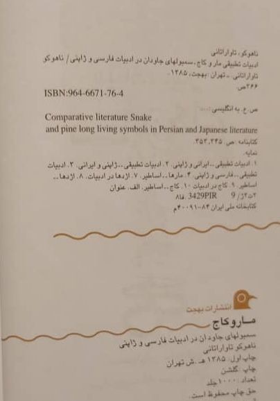 و "کاربرد آنها در ادبیات کلاسیک و معاصر ایران و ژاپن". نگارنده پس از بررسی هریک از سمبلهای یاد شده اذعان میدارد: "هردوی این سمبلها با اسطورهها پیوند محکم خوردهاند و از همه قابل توجهتر این نکته است که ریشههای مار و درخت کاج به یک سمبل مشترک ـ مرگ و