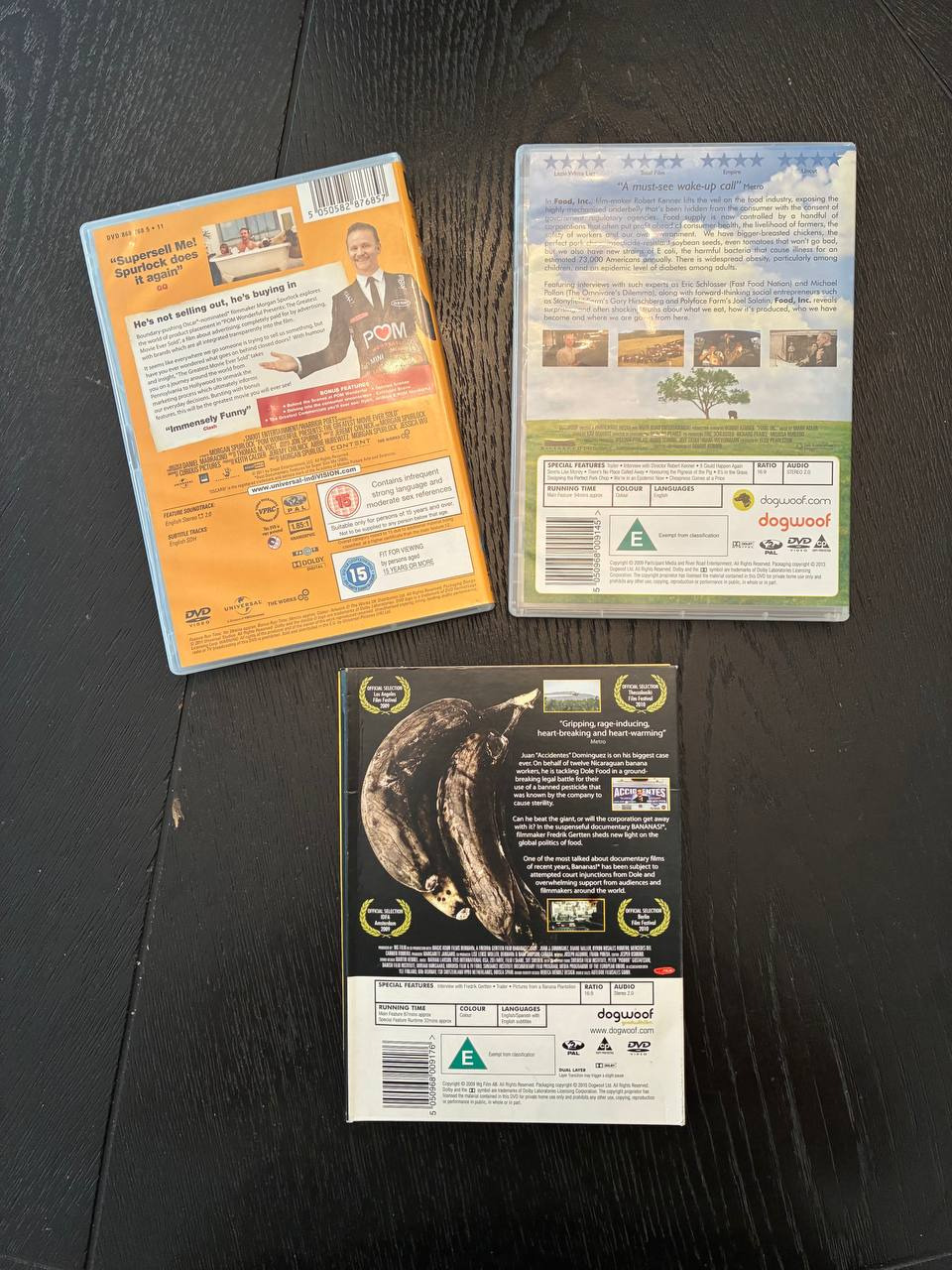 -مستند Bananas at any cost، داستان دادگاه 12 کارگر مزارع موز نیکارگوئه علیه غول بازار موز شرکت Dole، این مستند لایه های گوناگون سیستم سیاسی پخش موز در جهان و انتخاب های علمی و مسئولیت شرکتی در مورد بازار موز را بررسی می کند و چگونگی تعامل مسئله دار شرکت بین المللی جهان اولی با مزارع و کارگران اش در جهان سوم را نگاه می کند. ساخت 2009