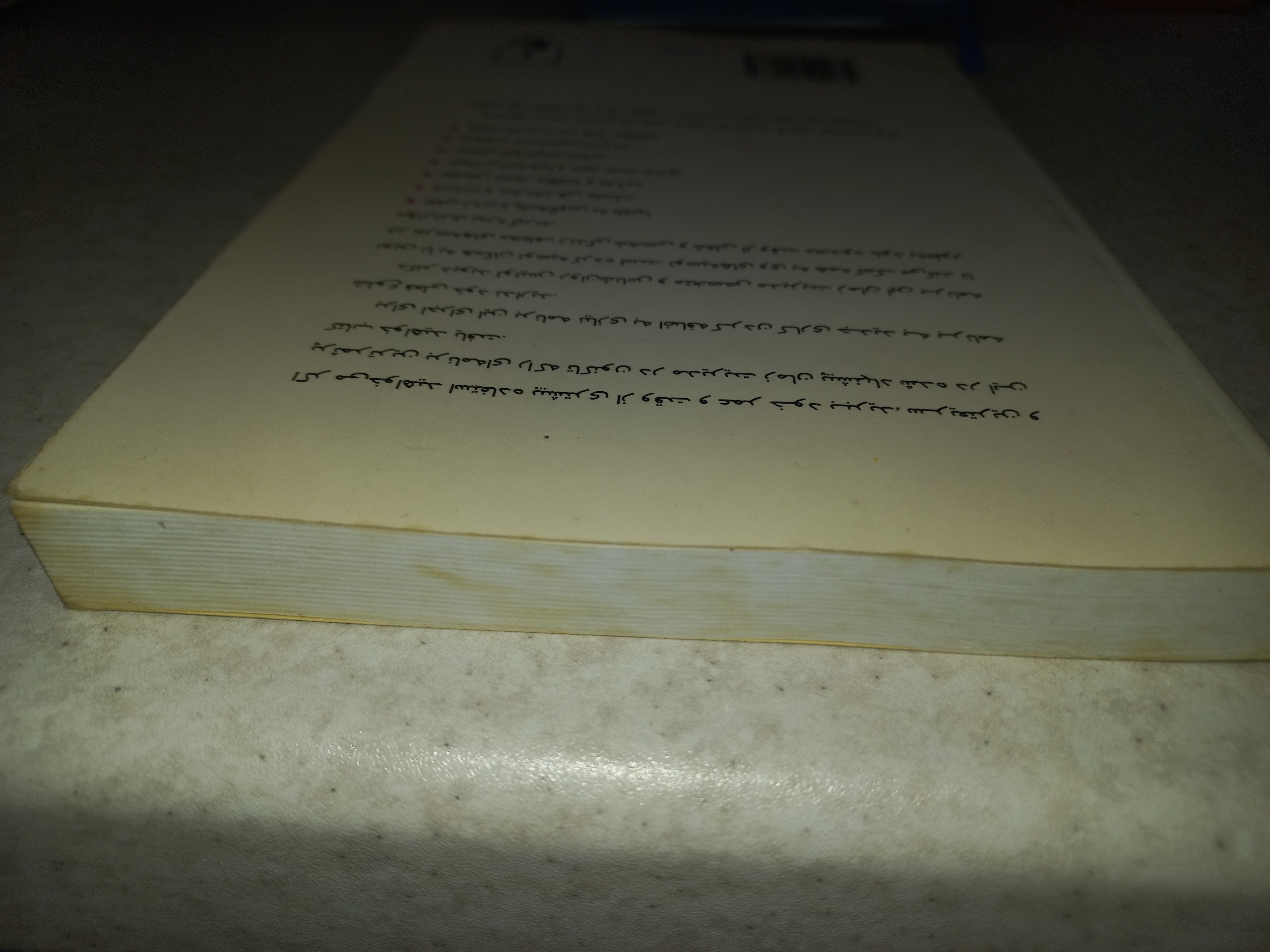 صفحات داخلی سالم و تمیز لب بالایی کتاب لک نم خوردگی دارد، با مداد خط کشیده شده وپشت جلد کمی کهنه شده که در عکس ها مشخص است