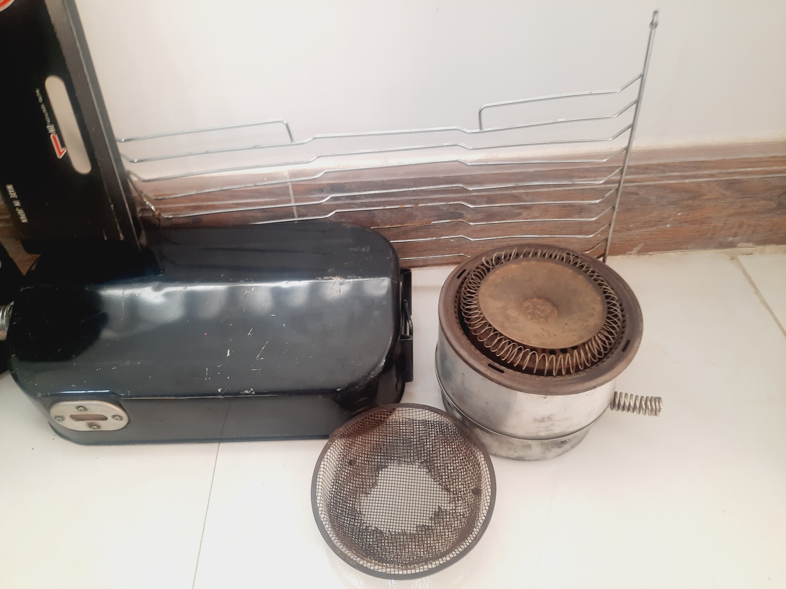 قطعات داخلی کامل بخاری فوجیکا شامل مخزن بالائی و پائینی،ماشین،فندک تنوره،فنس،قاب جلو همگی سالم وقابل استفاده ،فقط توری روی تنوره دوتکه هست.