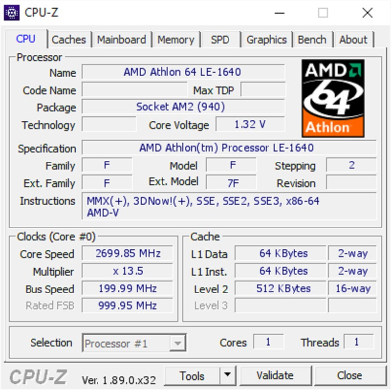مشخصات فنی پردازنده AMD Athlon 64 LE-1640
