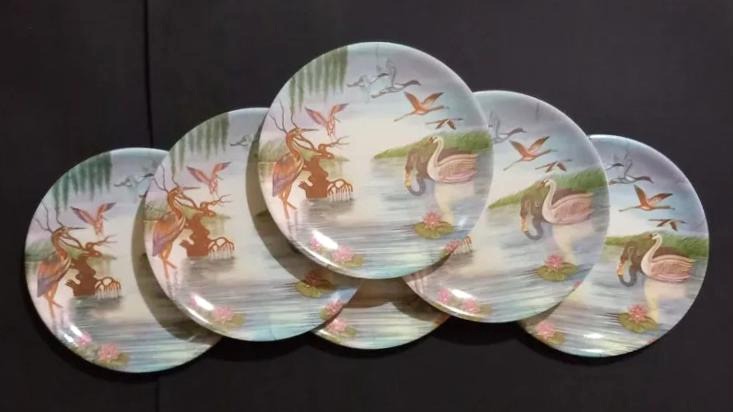 حراج 6 بشقاب پلوخوری ملامین تابلویی زمان پهلوی