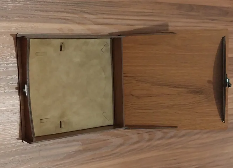 جعبه جواهری ( زیور آلات ) ، برنگ قهوهای طرح چوب ، داخل جعبه با مخمل قهوهای ، با طراحی بسیار زیبا و هنرمندانه و با قفل دستگیره دار ، استفاده روز مره و کلکسیونی ، تقدیم به شما عزیزان خاص پسند .