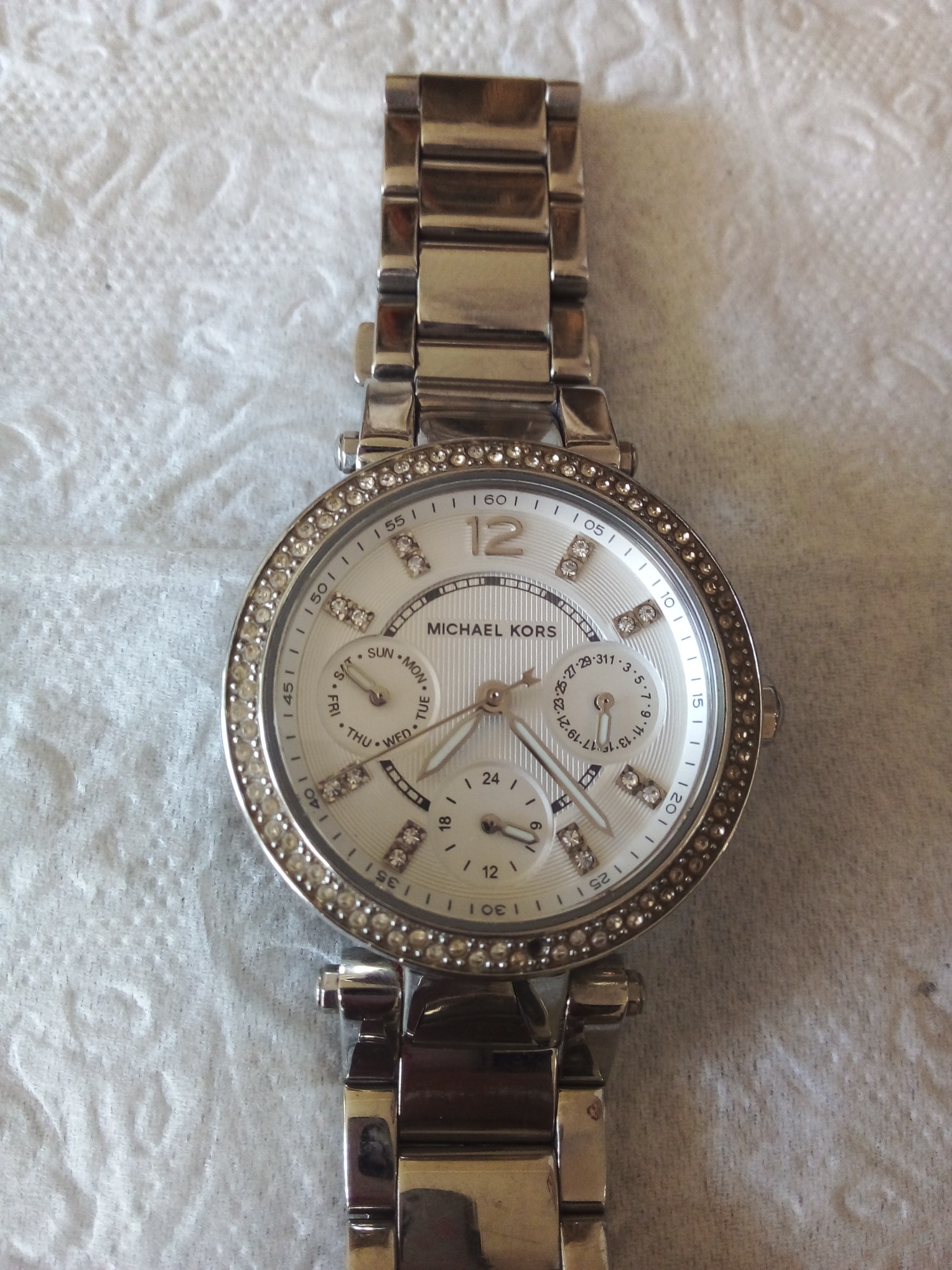 درود وروز بخیر خدمت عزیزان کاربر و سایت محترم ایسام . ساعت مچی زیبای زنانه مایکل کورس در حد نو نگین دار دقیقا هر انچه که در تصاویر میبینید . دوستان خریدار قبل از اقدام به خرید لطفا وحتمن عکسها را ببینید وتوضیحات را کامل بخوانید وهر سوالی بود در خدمتم