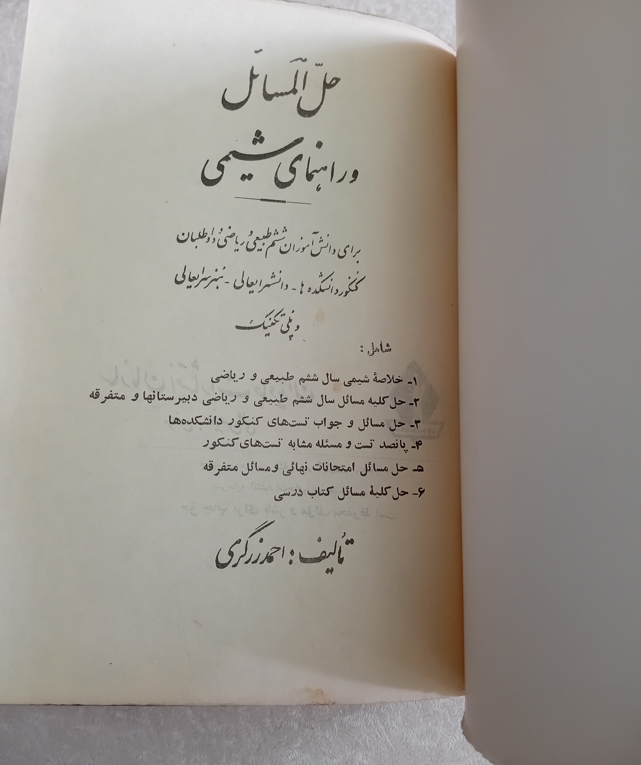 حل المسائل و راهنمای شیمی (سال ششم، 1350)