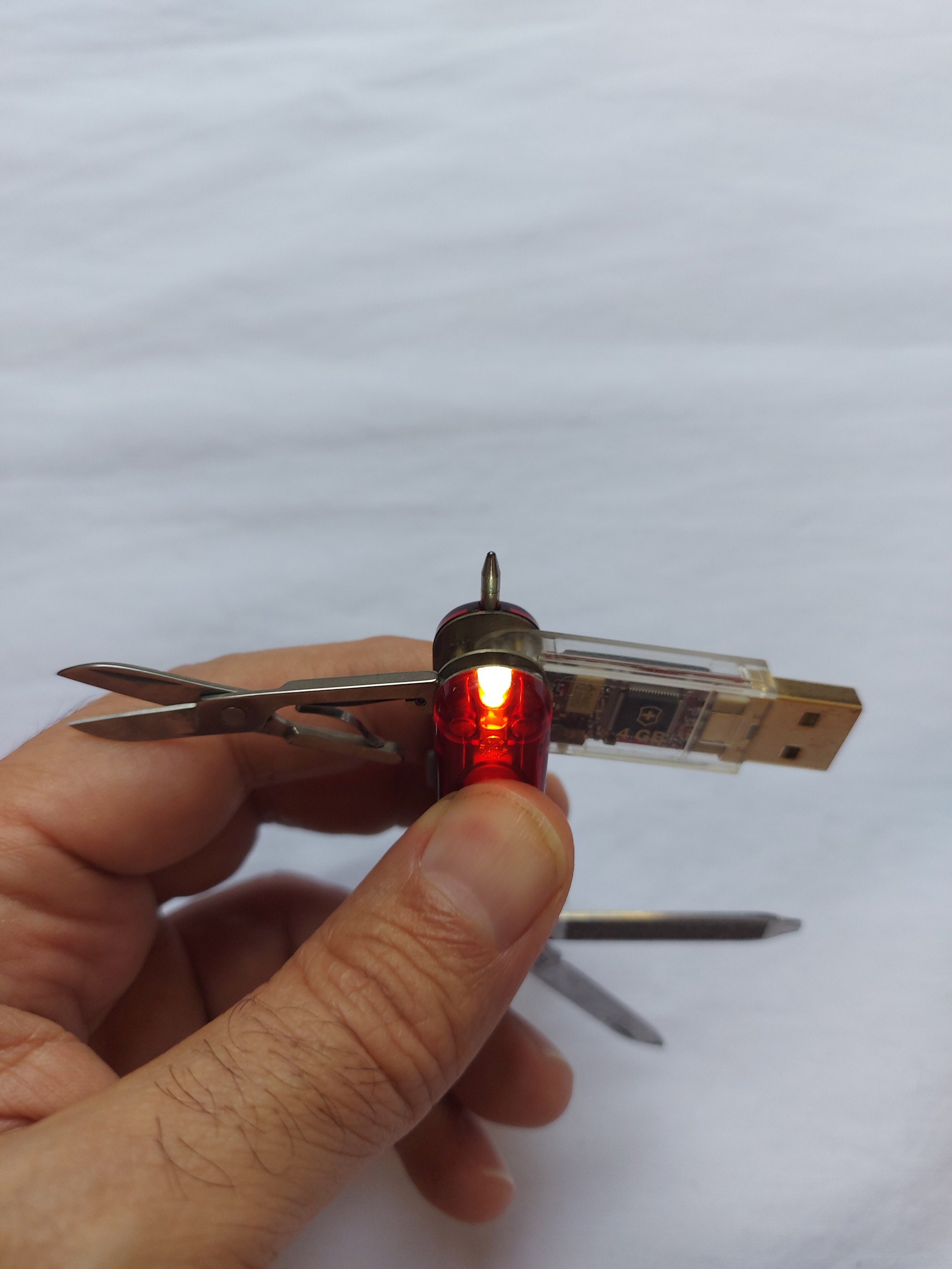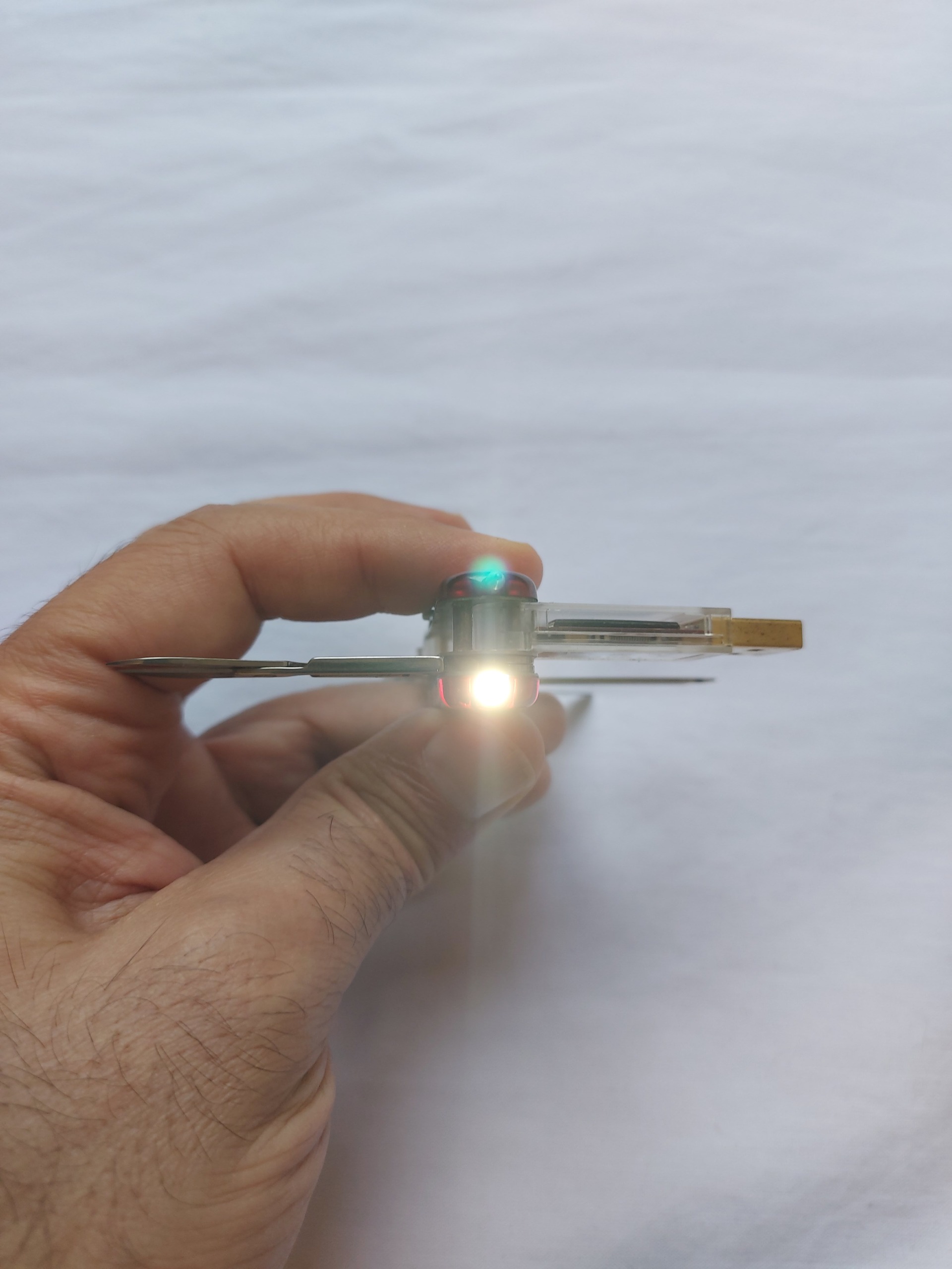 دارای چراغ قوه با برد حدود 5 متر - مخصوص خودرو و داخل جیب یا کیف بانوان - دارای فلش مموری 4 کیگ - دارای چاقو ، سوهان ناخن و قیچی و خودکار - طول 6 سانت بدون حلقه - مخصوص مسافرت و کمپ - نو نو و سالم با جعبه -