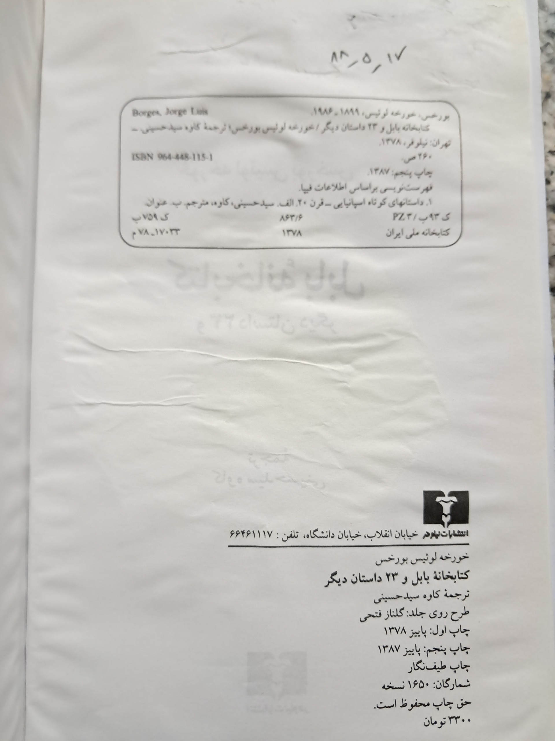 بر روی 5 ورق از کتاب لکه ای ایجاد شده است و همچنین حدوداً 40 ورق از کتاب دارای چروکیدگی هستند که تصویر نمونه گذاشته ام.