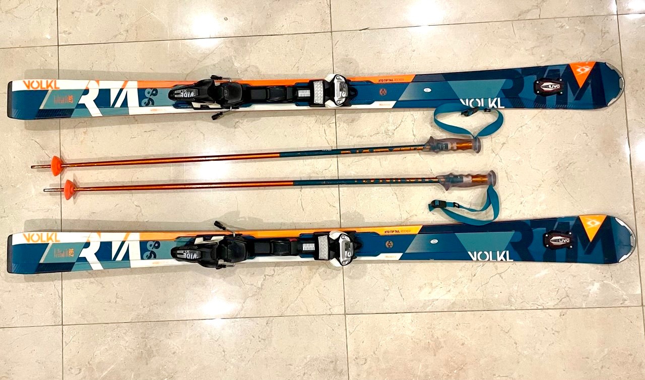 2 عدد چوب اسکی برند VOLKL سری RTM86 با قد 167 و 172 به همراه باتوم ست خودش و فیکس 140 کیلو برند MARKER آلمان سال ساخت 2017-2018 ( چوب اسکی بلندتر با کفش هم دارد که در صورت درخواست جداگانه حساب می شود) چوب ها هر کدام 29 تومن به همراه باتوم - کفش 10 تومن برند HEADفلکس 100