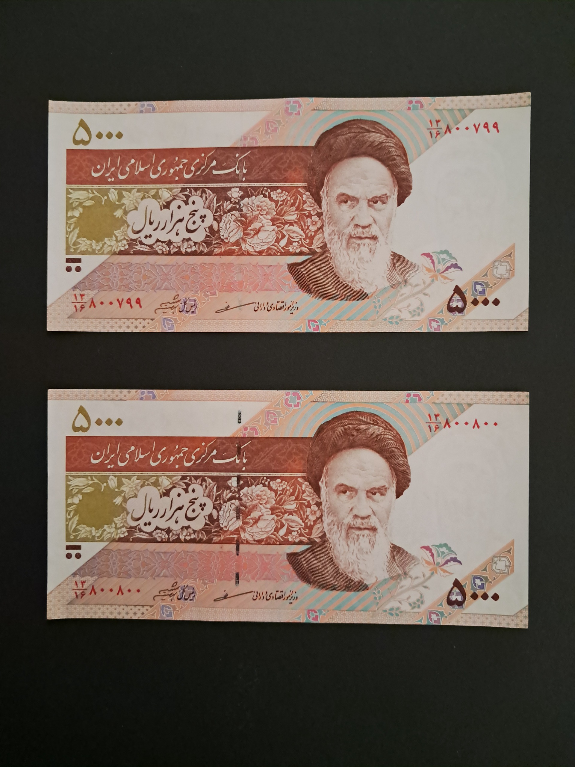 یک جفت پنج هزار ریالی با کیفیت سوپر بانکی( شماره بسیار زیبا و رند ) ، دقیقا مطابق تصویر ارسال میشود  ،