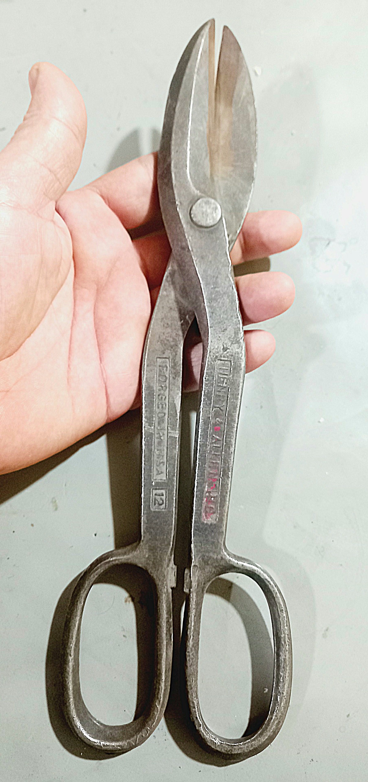 قیچی ورق بری آمریکایی قدیمی دقیقا مطابق تصاویر فقط ناگفته نماند که نیاز به تعمیر داره منظور باید داده بشه به یک قیچی ساز تا تنظیم و تیز وو کنه