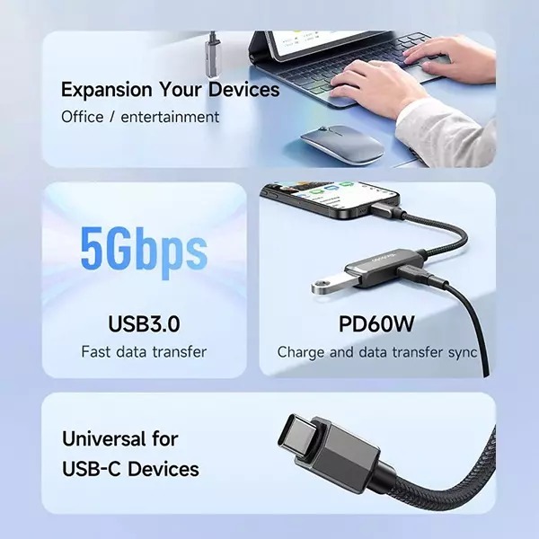 یک پورت یو اس بی 3.0 و یک کانکتور تایپ سی دو طرف این تبدیل را تشکیل داده اند