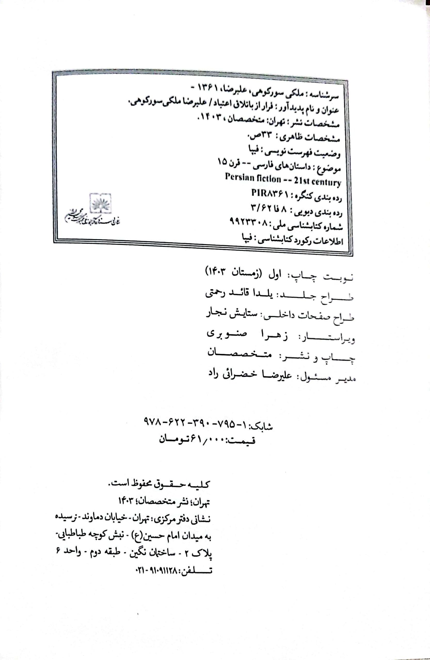 کتاب رمان اجتماعی فرار از باتلاق اعتیاد به قلم اینجانب(علیرضا ملکی سورکوهی ) نگاشته شده است و توسط انتشارات متخصصان به چاپ رسیده است.