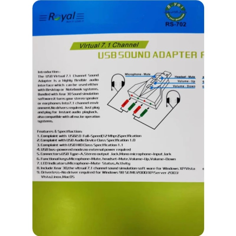 کارت صدای اکسترنال حرفه ای USB رویال Royal RS702