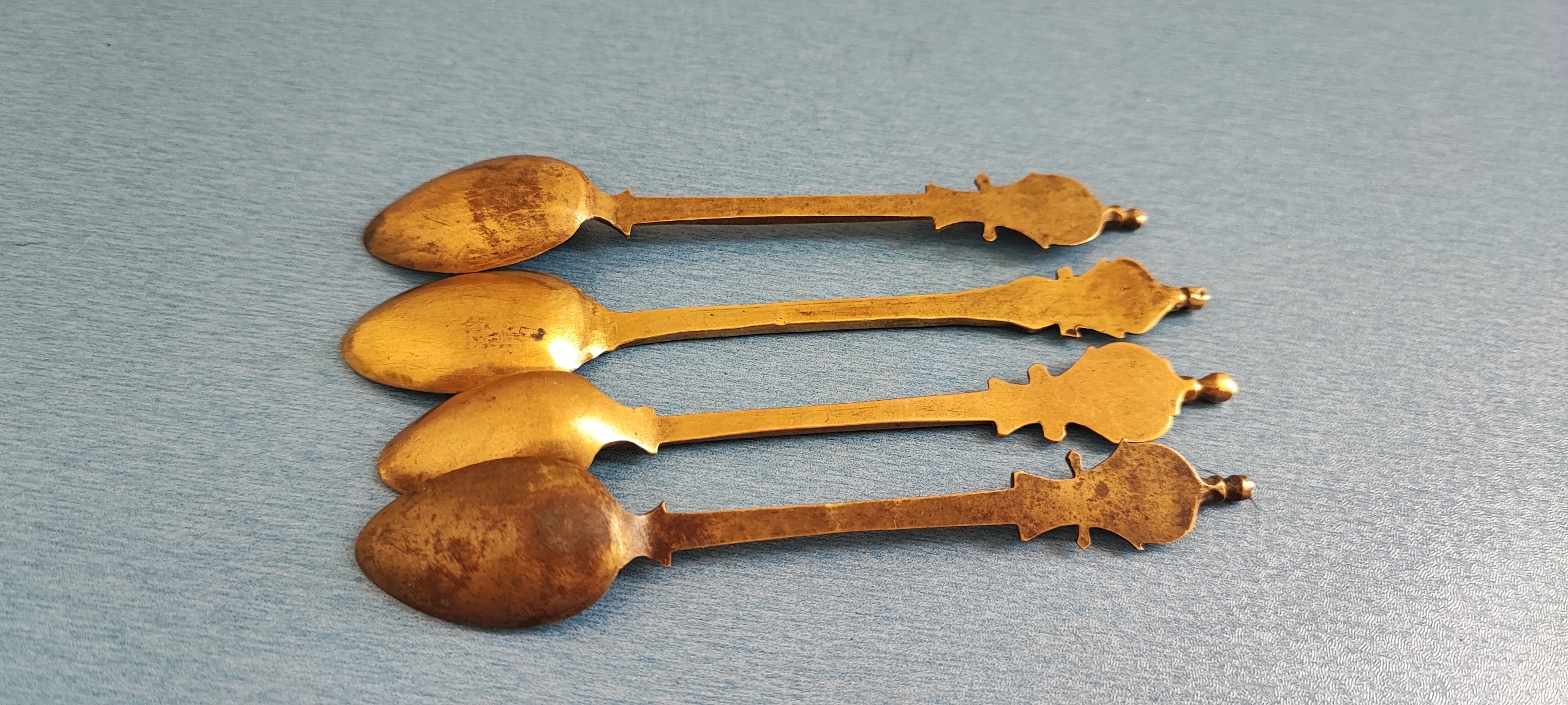 4 عدد قاشق چایخوری برنجی زیبا و قدیمی