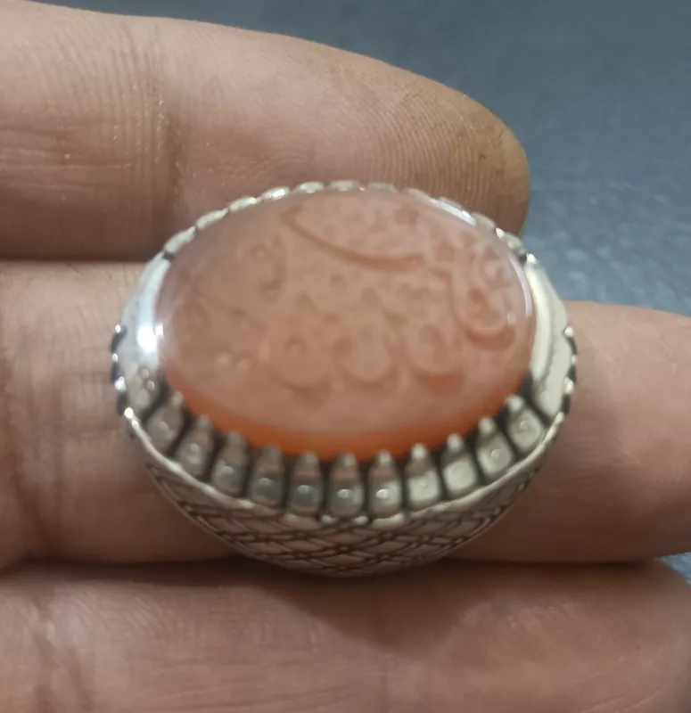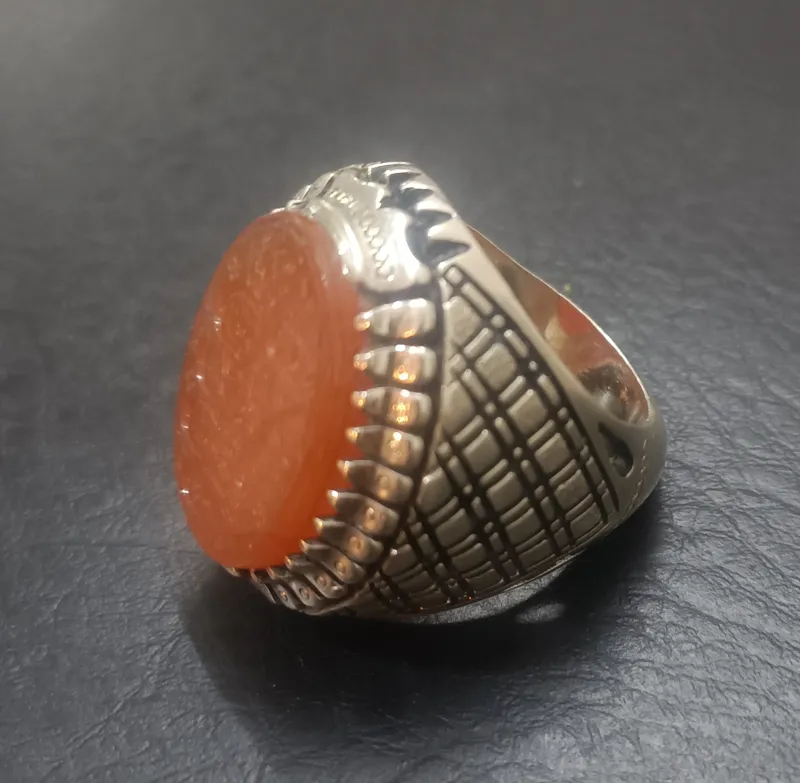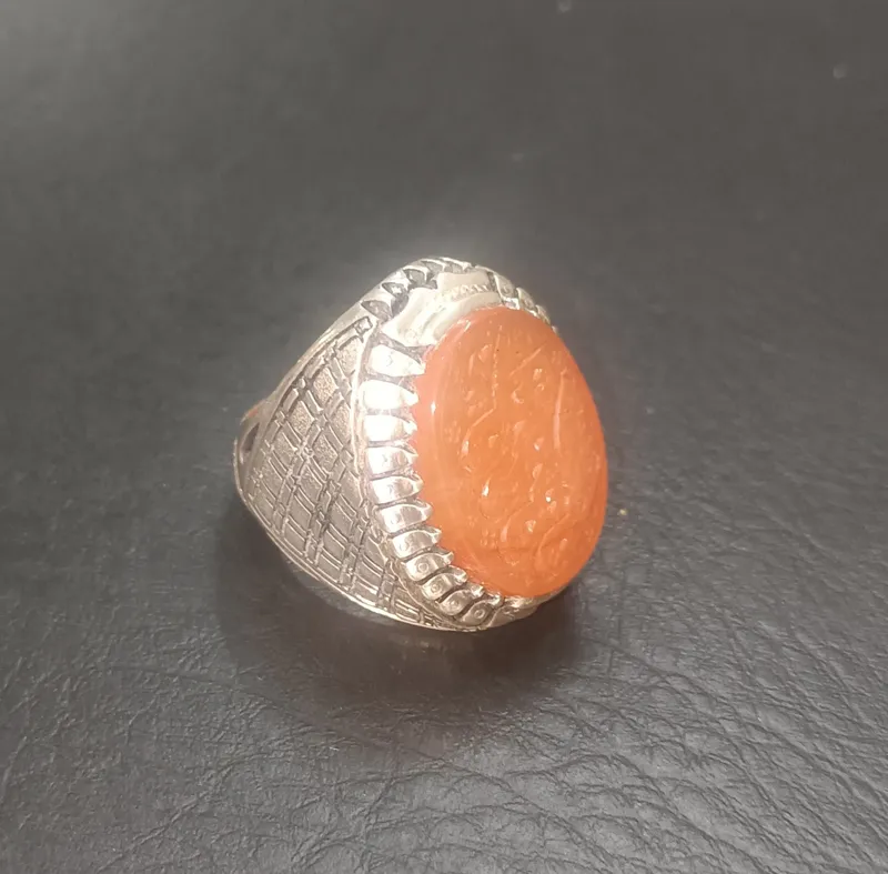 انگشتر نقره دست ساز دو مهرعقیق خراسان با خط محتشم