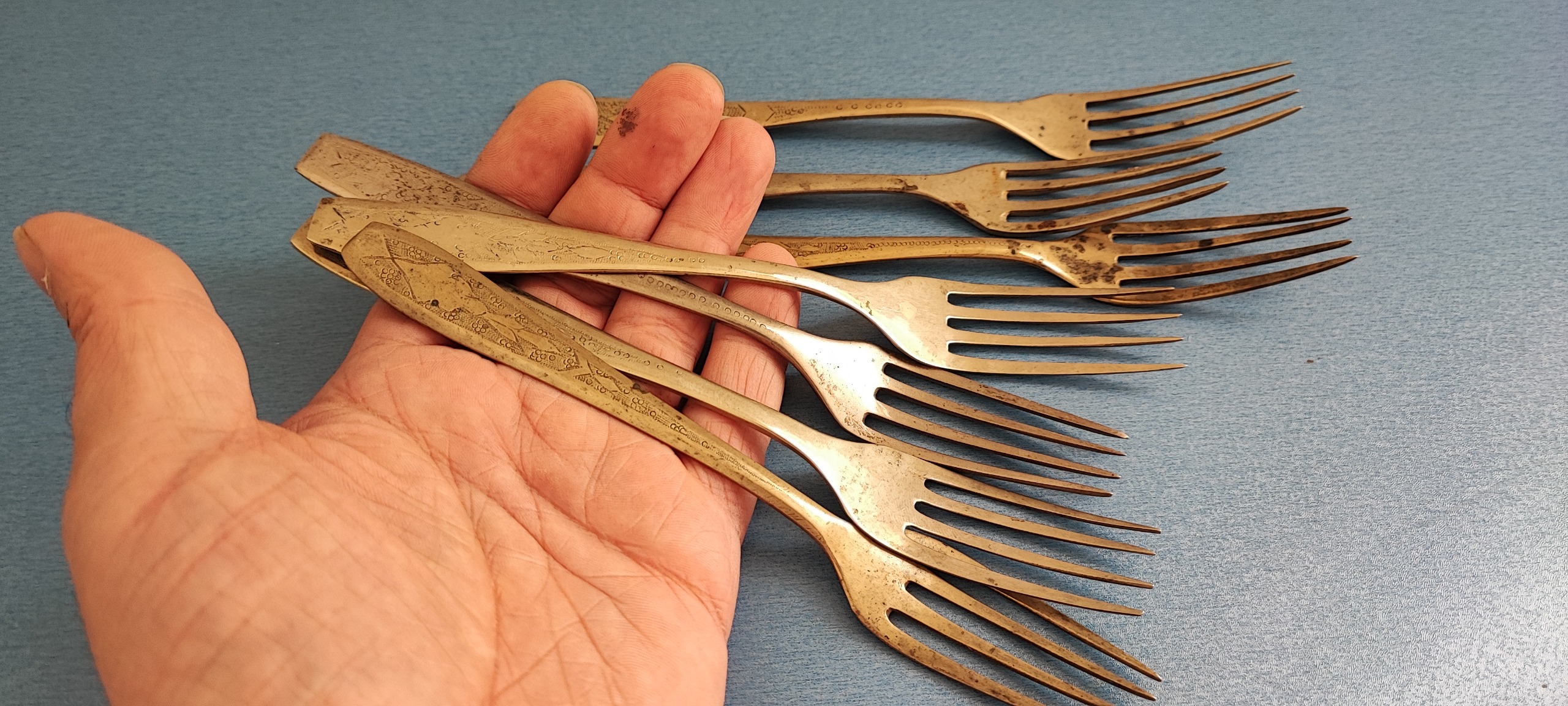 18 و 19 سانت طول، دارای مهر و قلمزنی روی دسته ها، زیبا و کمیاب و کلکسیونی