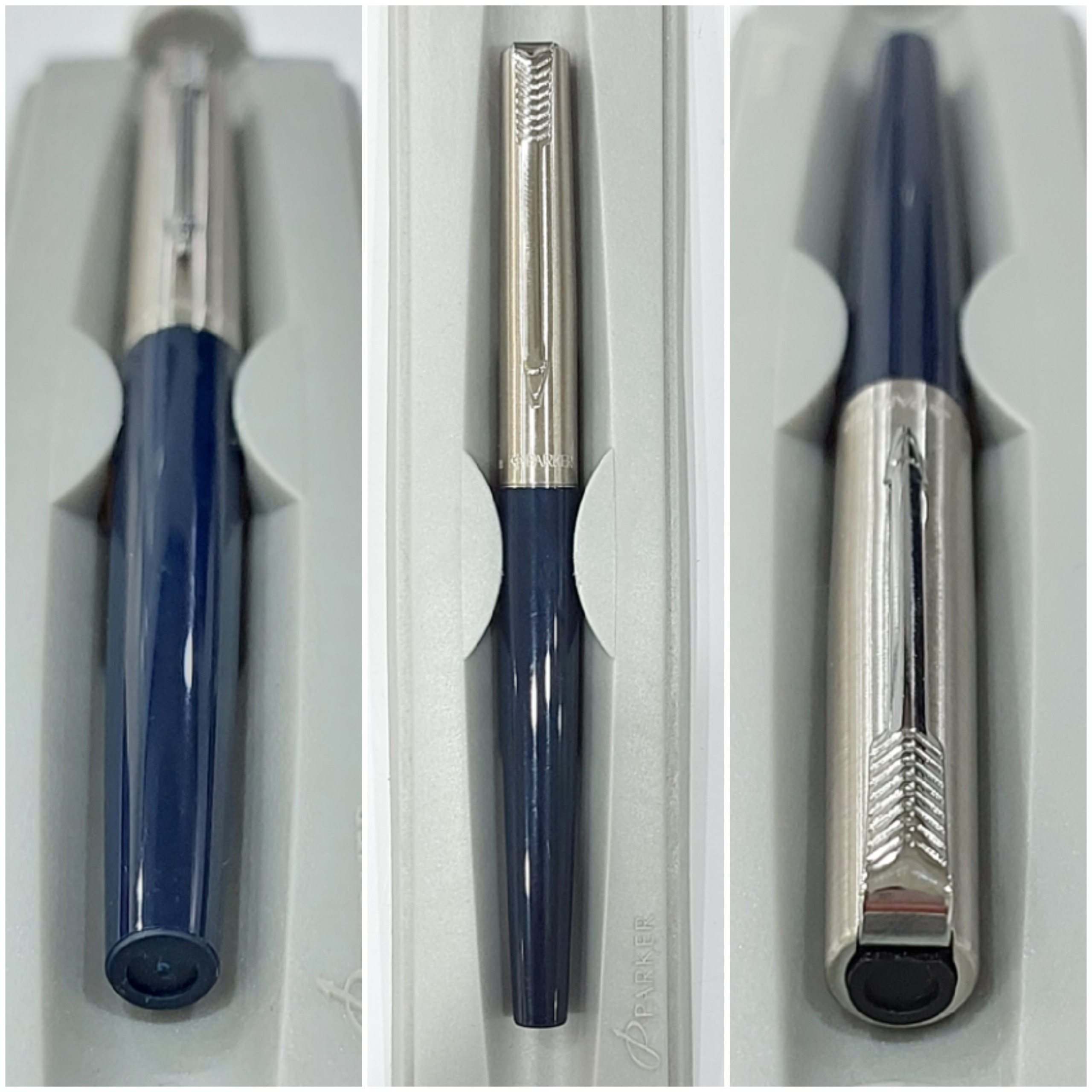خودنویس PARKER JOTTER انگلیسی اصل، بسیار زیبا و ارزشمند، خاص و منحصر به فرد میباشد. بسیار خوش ساخت، خوش دست و خوش استایل. جنس بدنه خودنویس از پلاستیک فشرده درجه یک بوده و بسیار محکم میباشد. دارای پمپ جوهر فابریک
