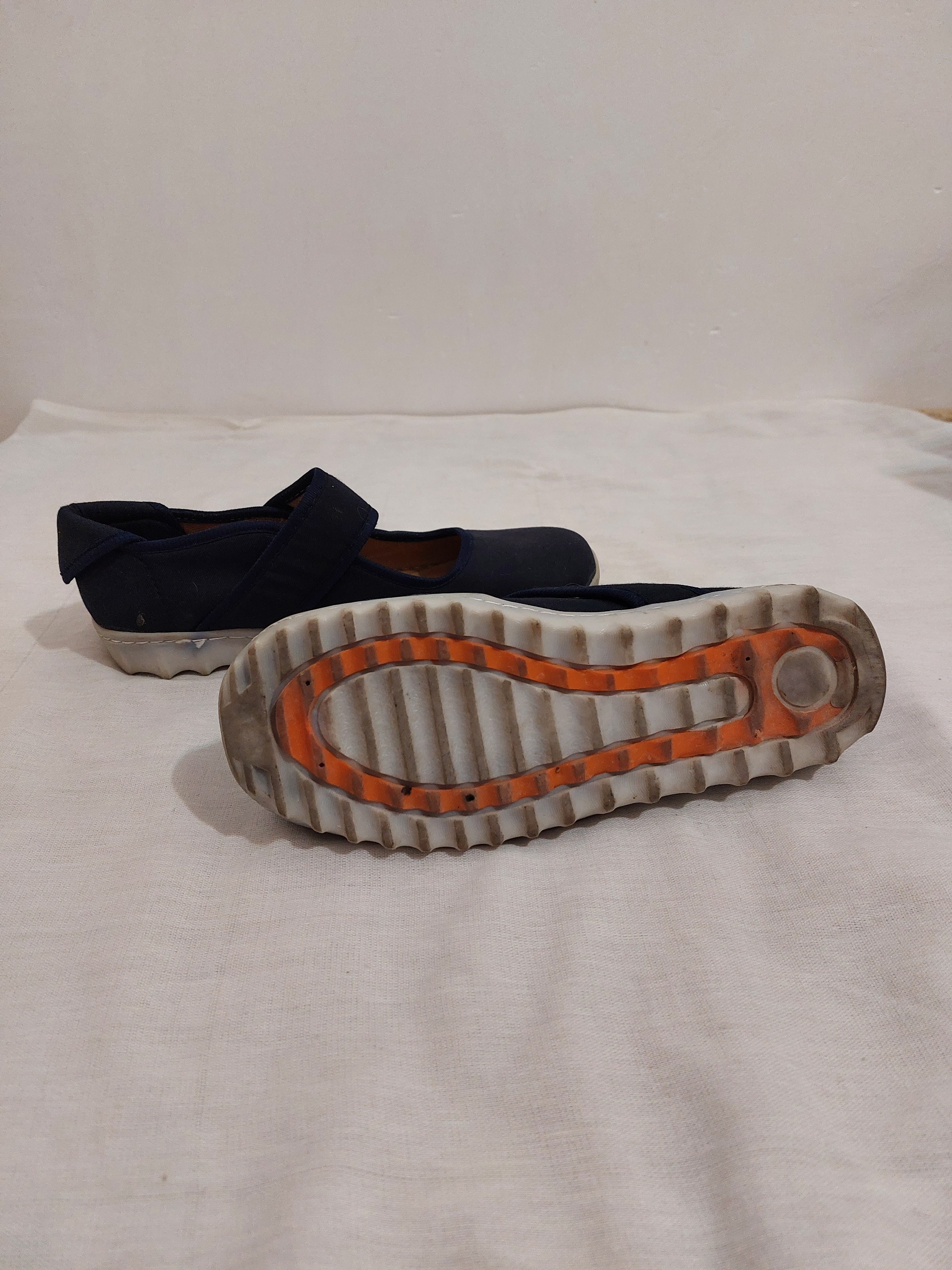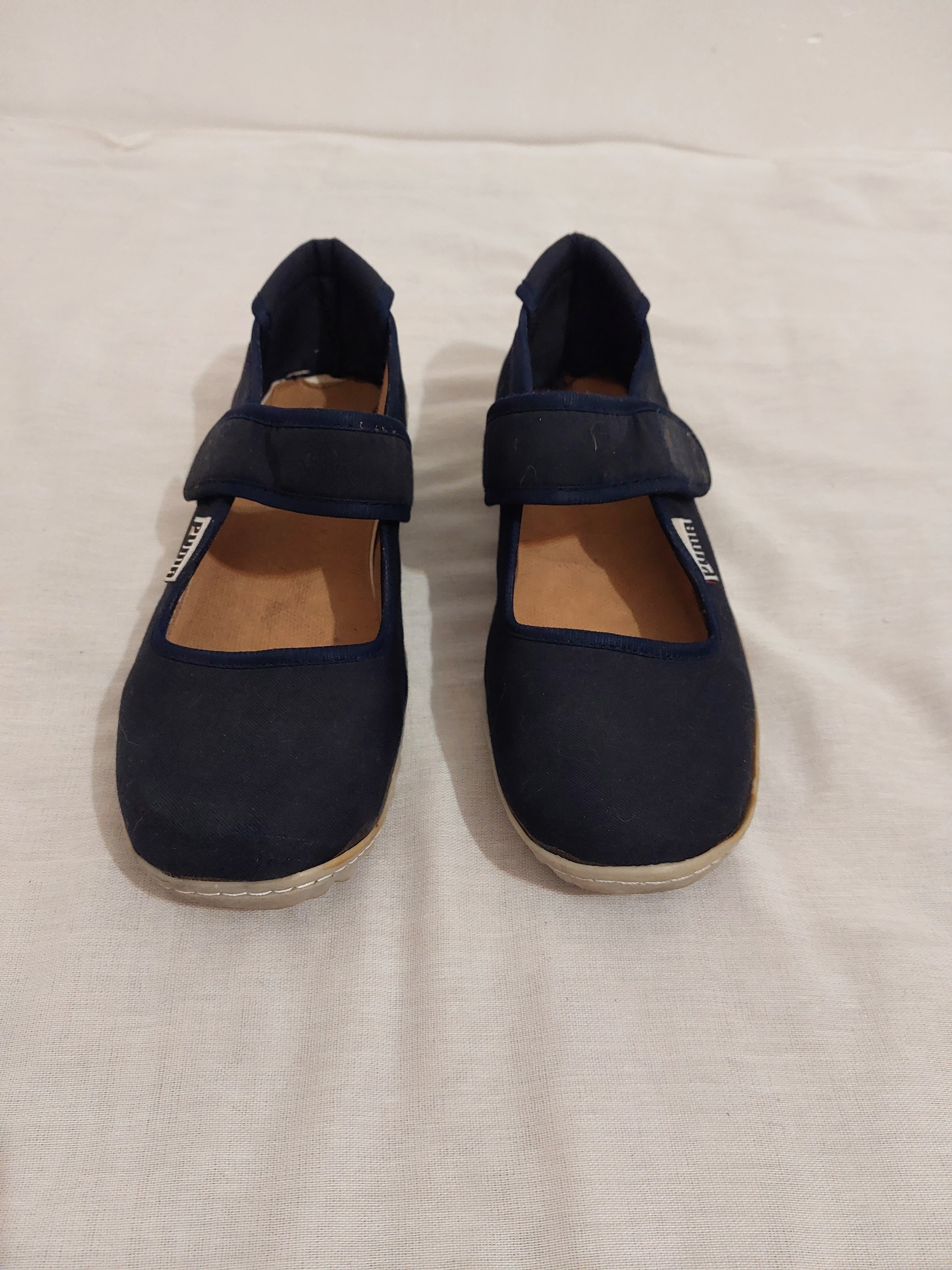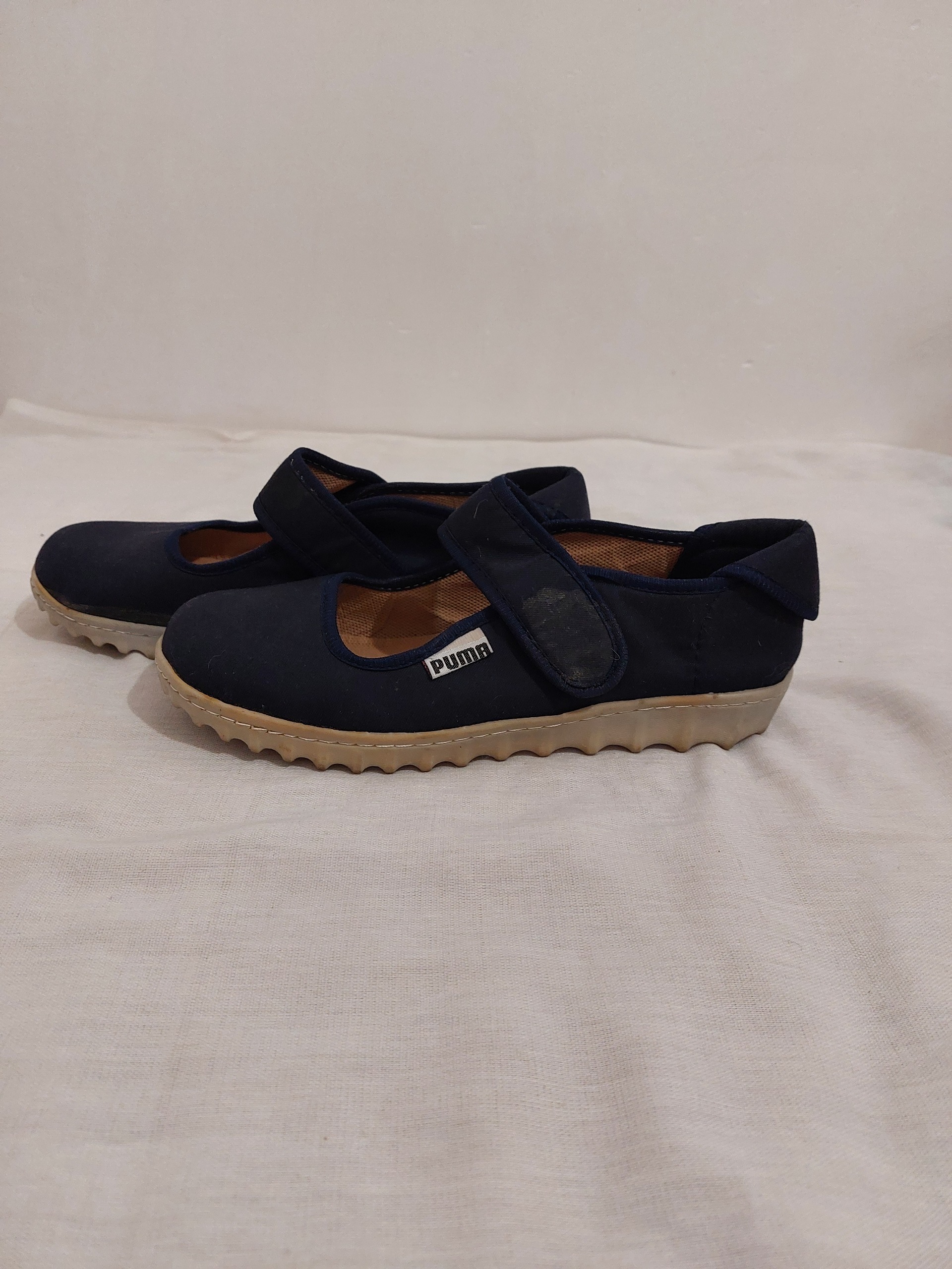 کفش استوک شیک کفش زنانه دخترانه مدل کفش عروسکی رو باز چسبی طرح پوما puma سرمه ای رنگ
