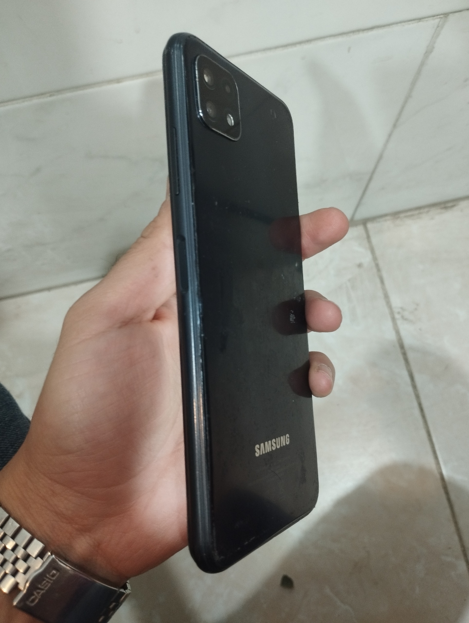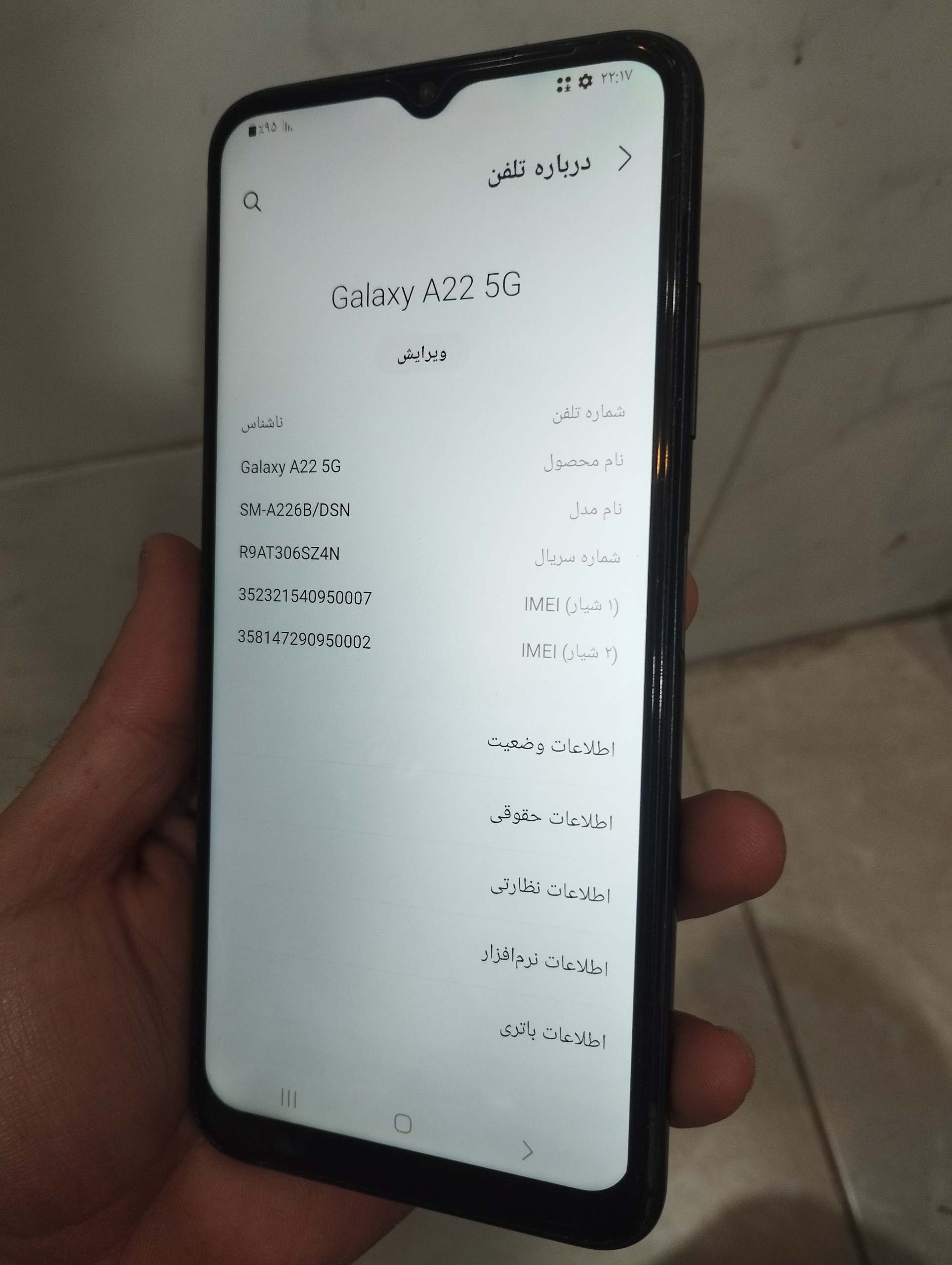 A22 فایوجی کاملا سالم اندروید 12 حافظه 128 رم 4 ریجستری وضعیت سفیده بدون انتقال همراه جعبه و شارژر..