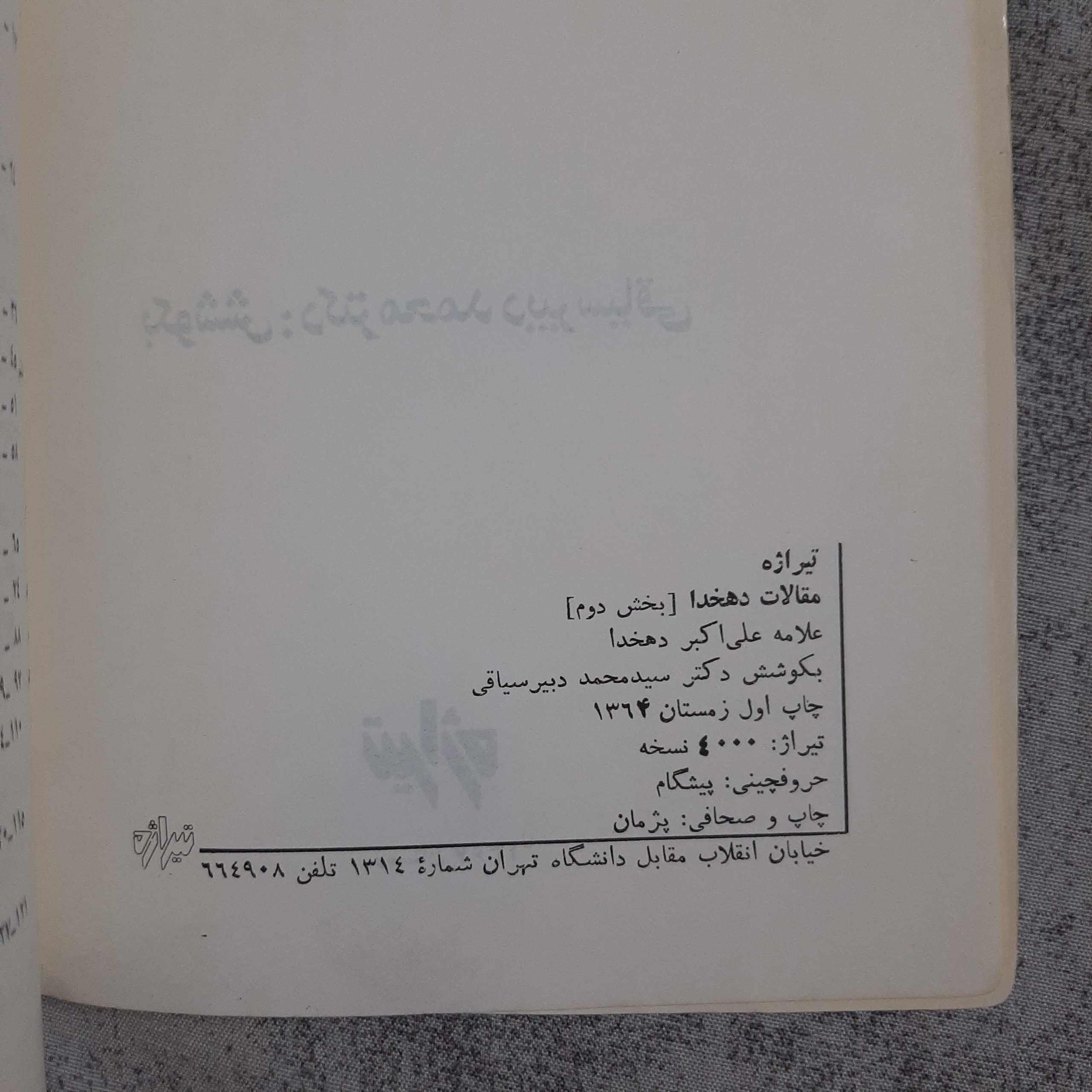 چاپ اول، زمستان 1364