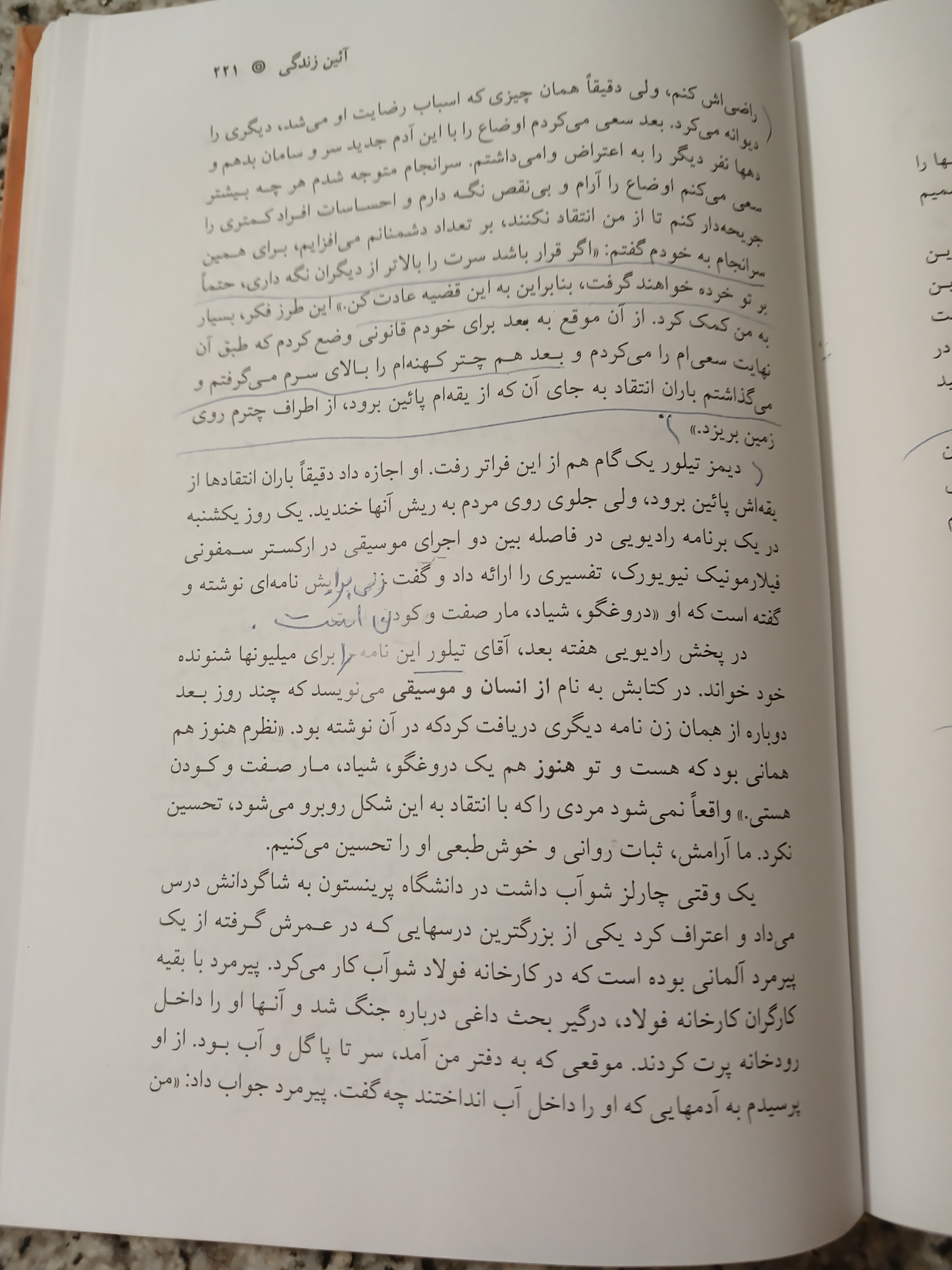 کمتر از نصف صفحات کتاب با خودکار زیر جملات خط کشیده یا علامت گذاری شده یا صفحه اول کتاب خوردگی دارد. که تصویر نمونه گذاشته ام.