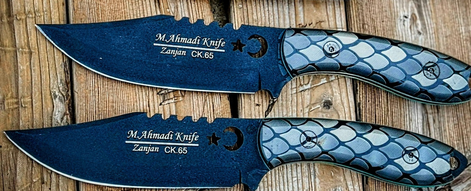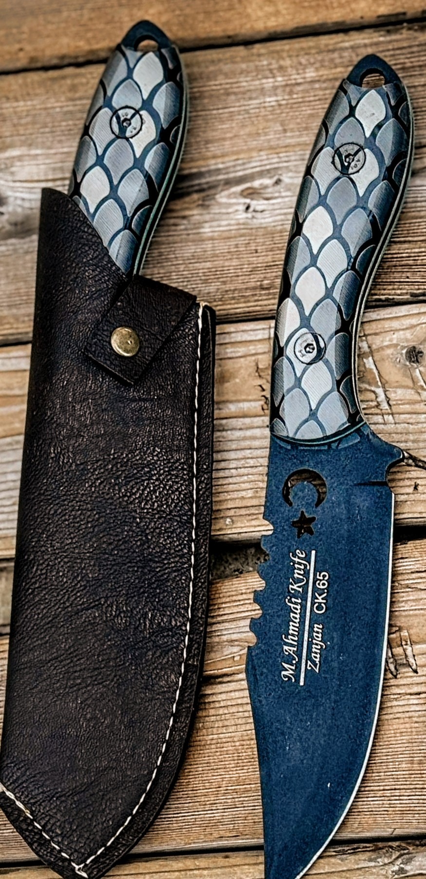 چاقوشکاری دسته طرح پوست ماری تیغه استیل فولاد دودی
