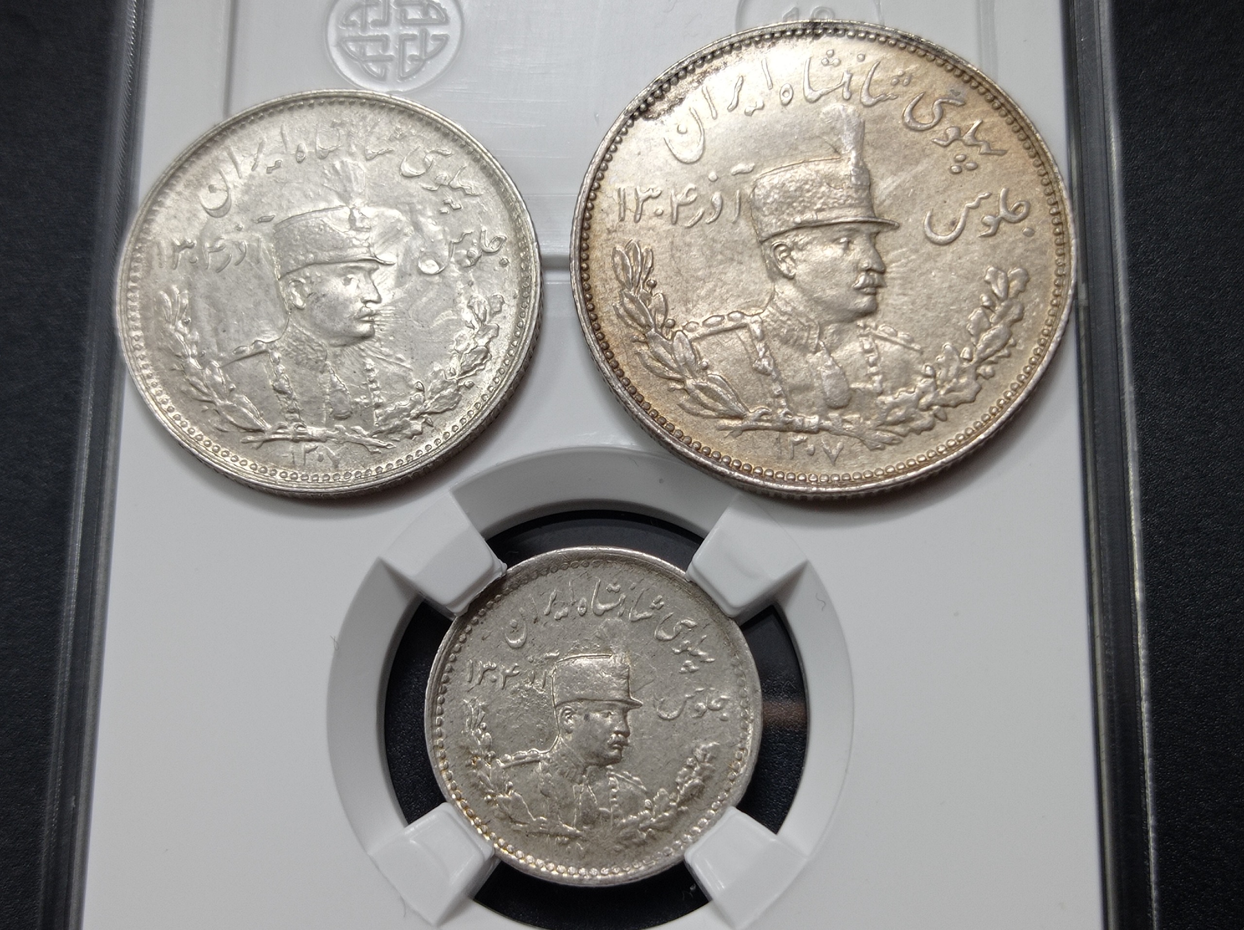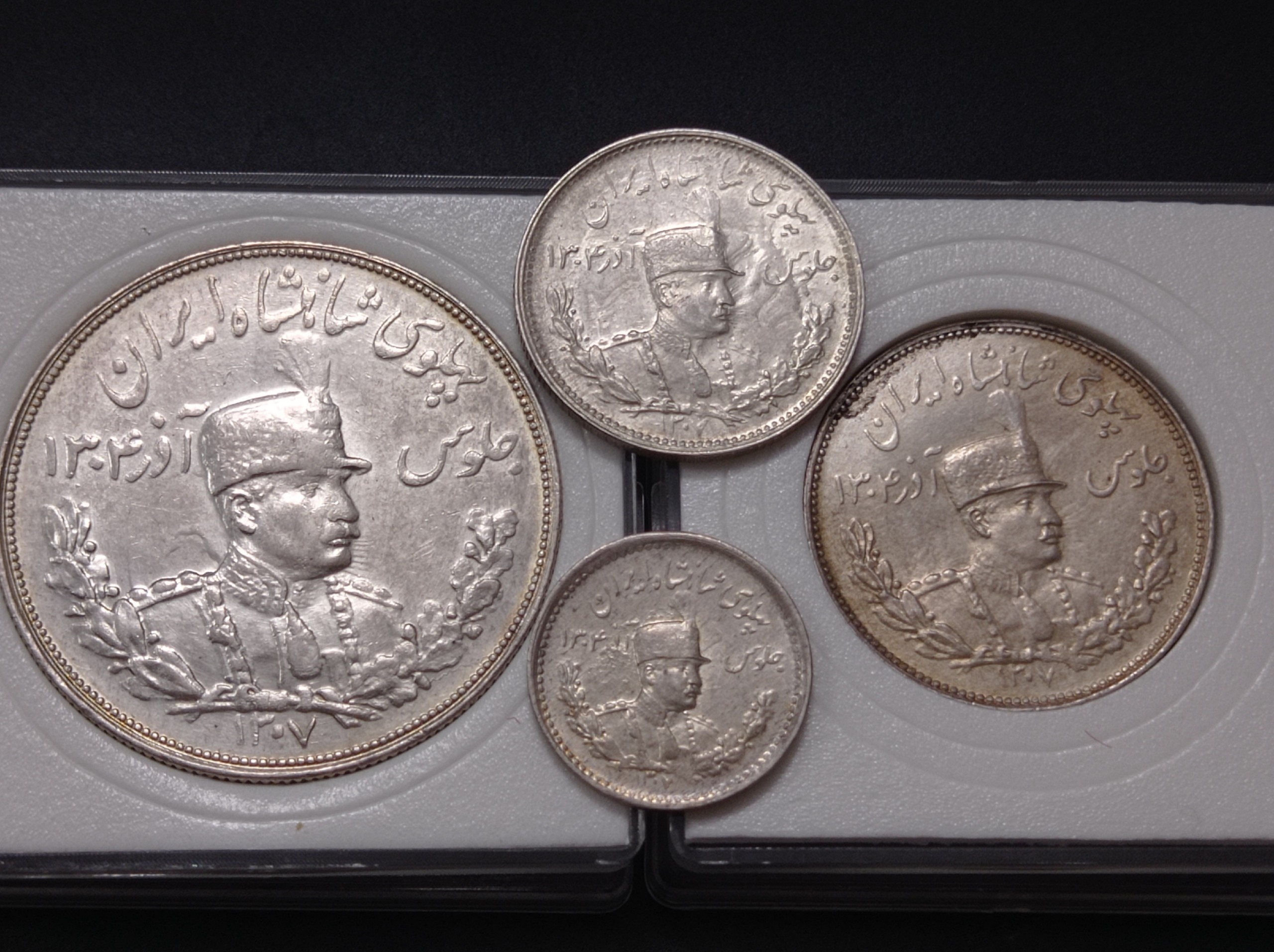 ست ارزشمند سکههای تصویری تاریخ 1307 رضاشاه پهلوی