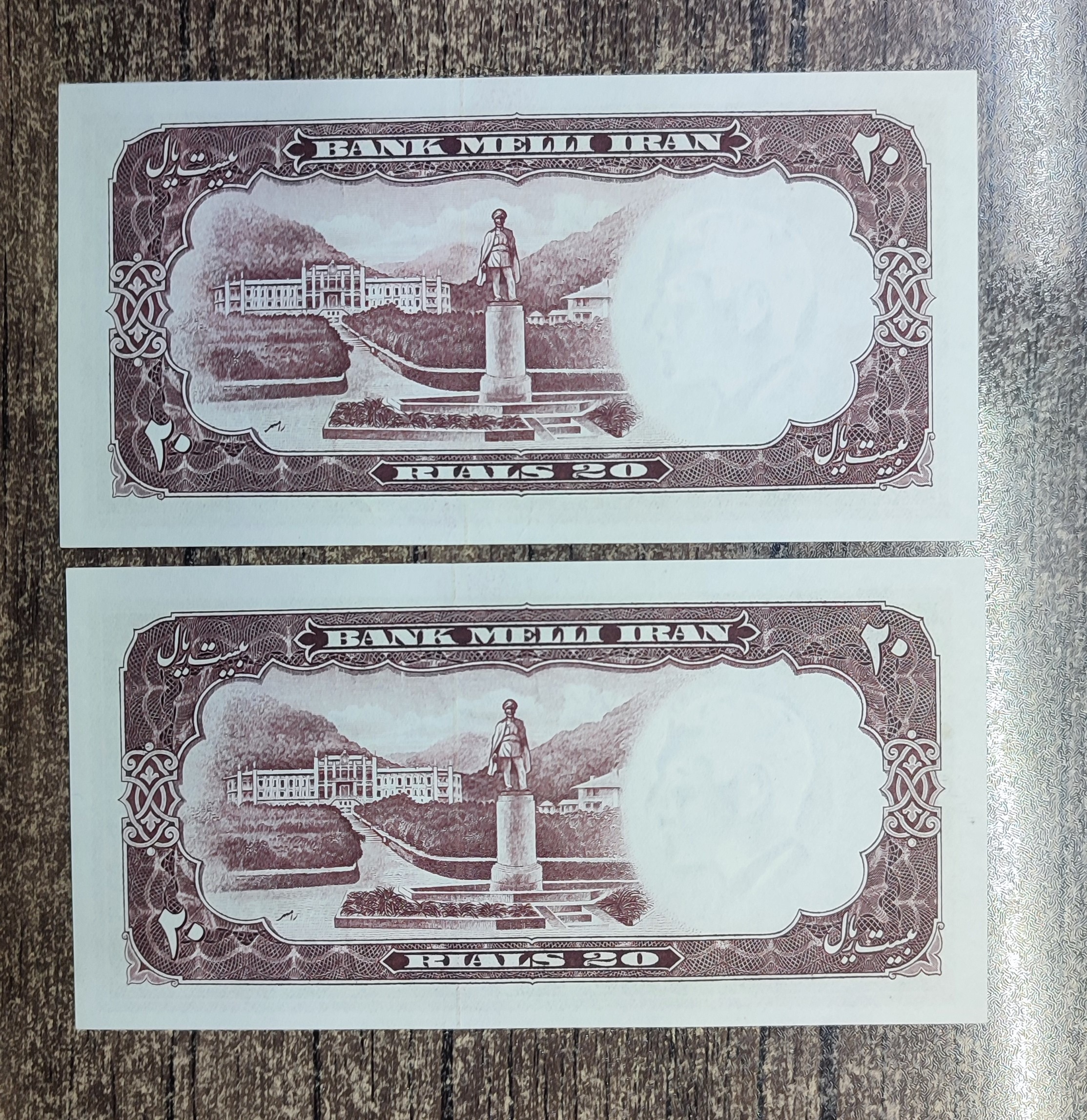 جفت اسکناس 20 ریالی  بانک ملی ایران سال 1337