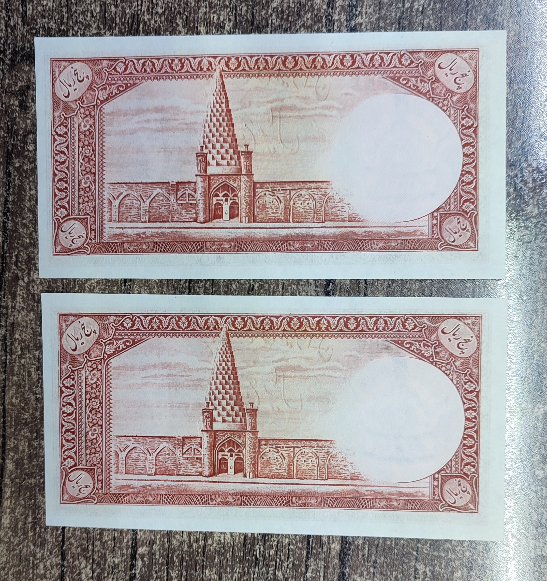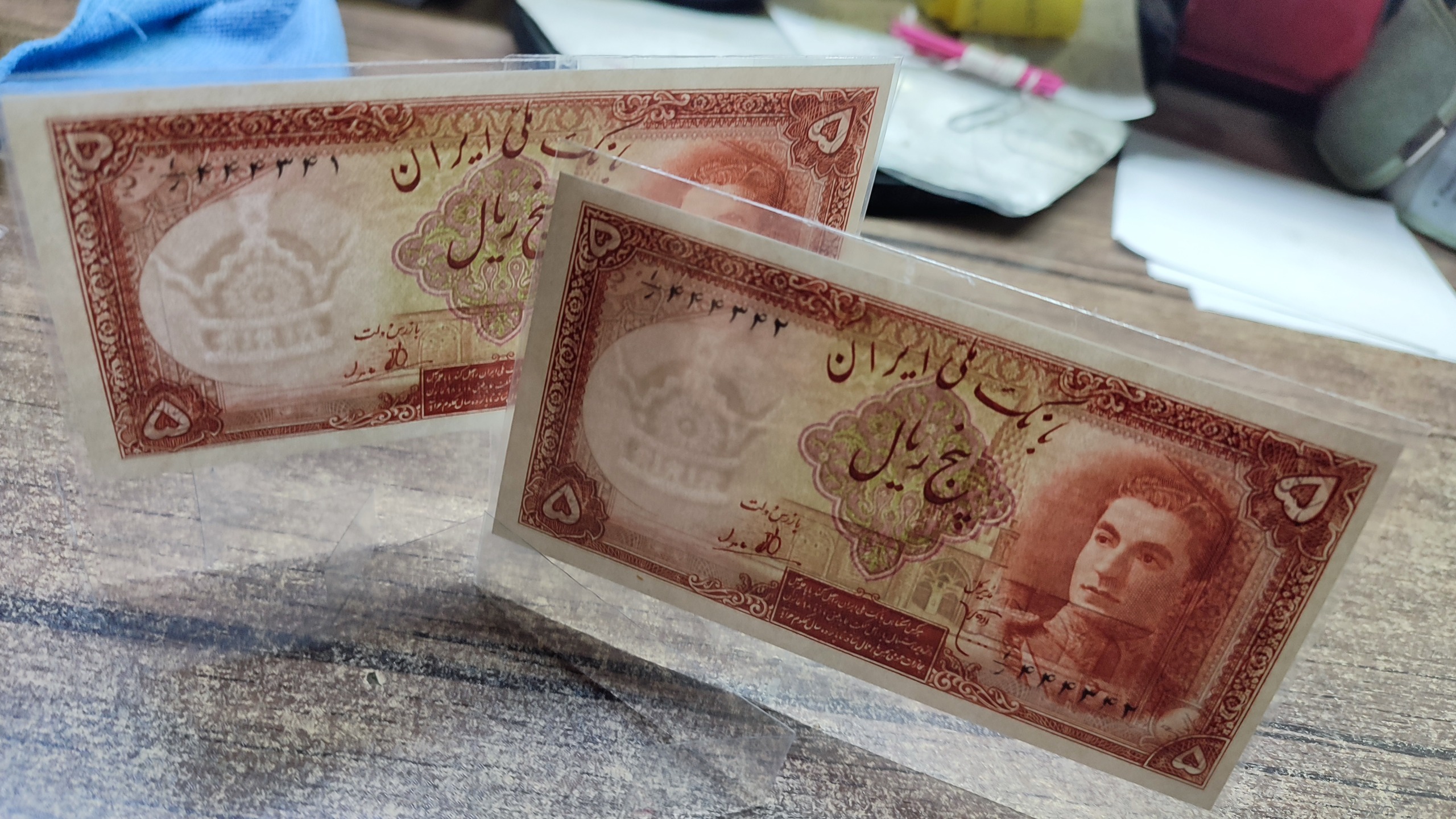 اسکناس 5 ریالی سری اول پهلوی دوم با دو شماره مزاحم
