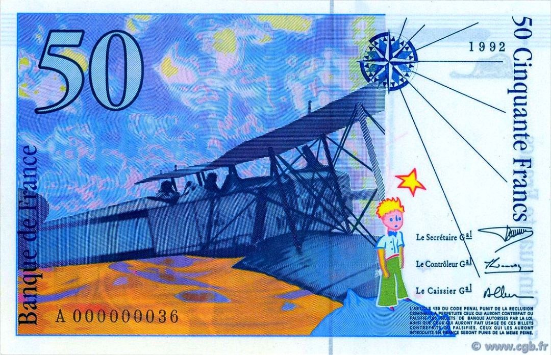 50 فرانک unc فرانسه معروف به شازده کوچولو