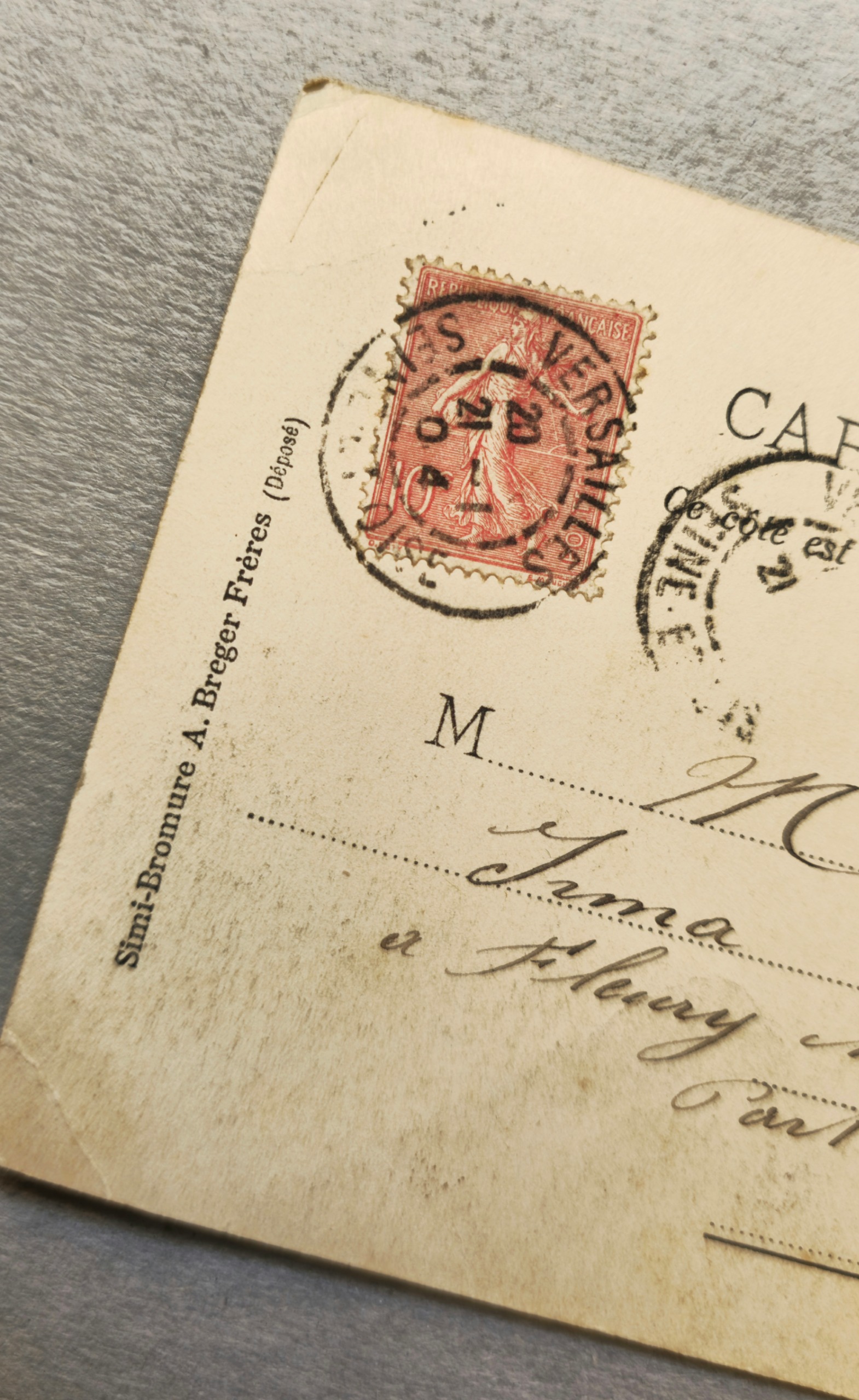 - دارای تمبر و مهر پستی واقعی فرانسه (1922)