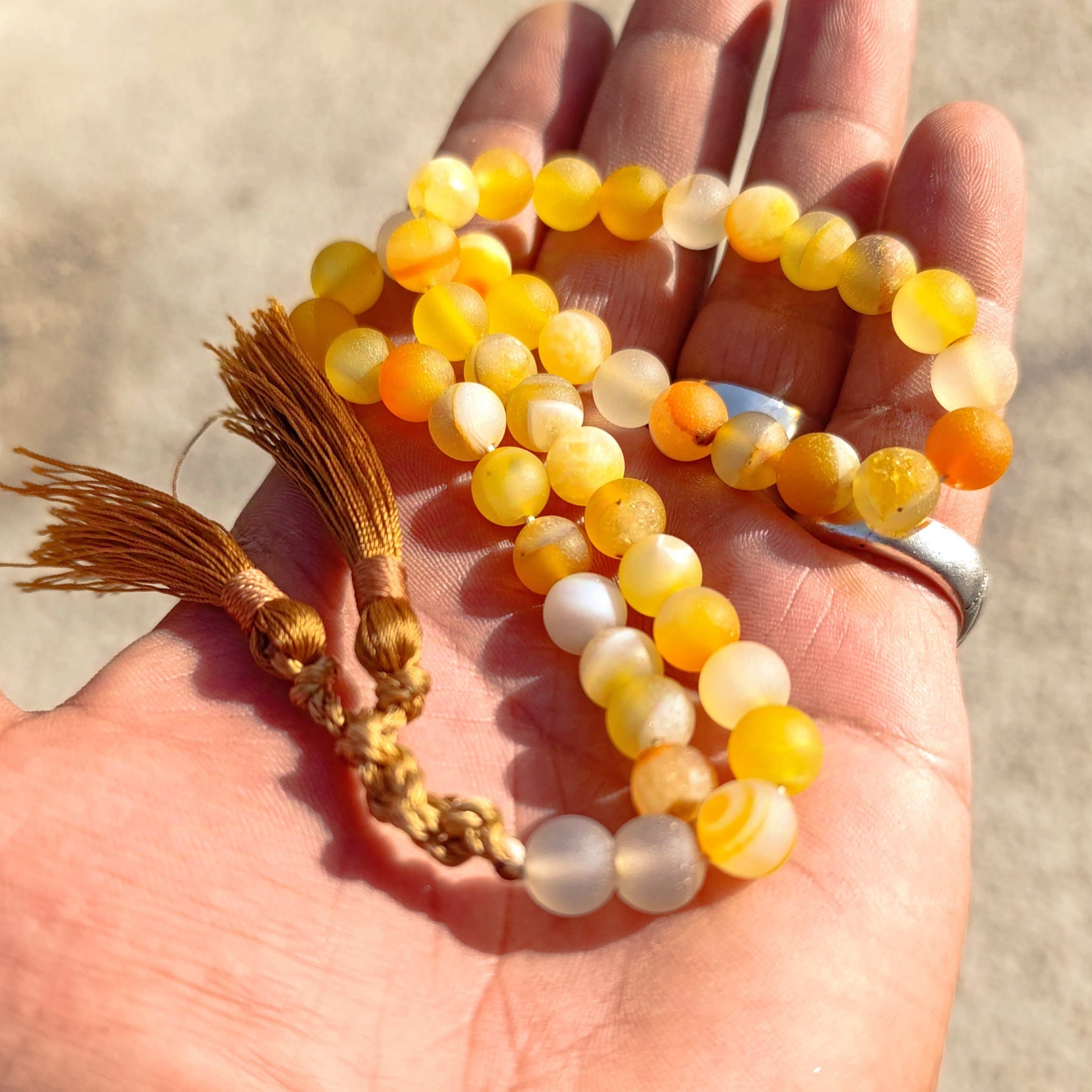 تسبیح عقیق زرد باباقوری دار تراش کهنه